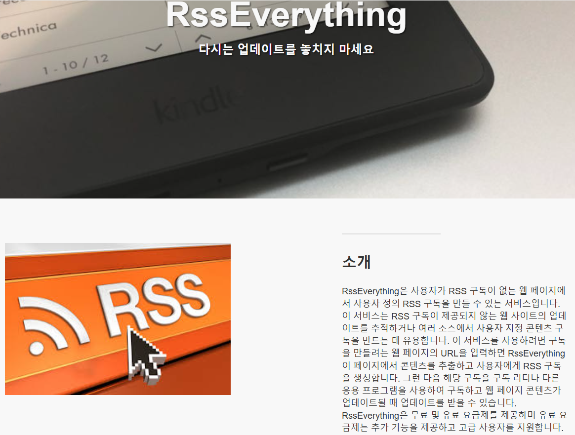 소개 RssEverything은 사용자가 RSS 구독이 없는 웹 페이지에서 사용자 정의 RSS 구독을 만들 수 있는 서비스입니다. 이 서비스는 RSS 구독이 제공되지 않는 웹 사이트의 업데이트를 추적하거나 여러