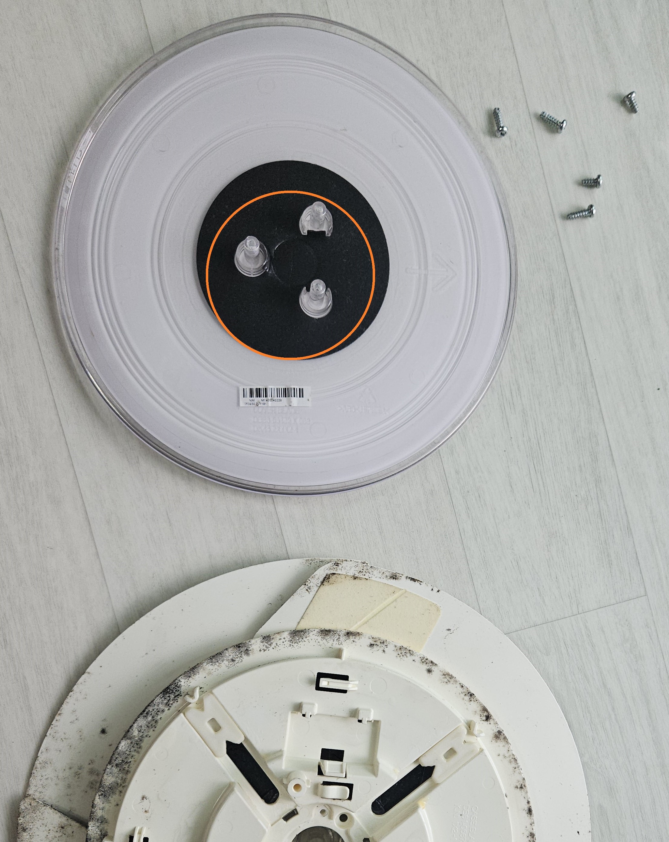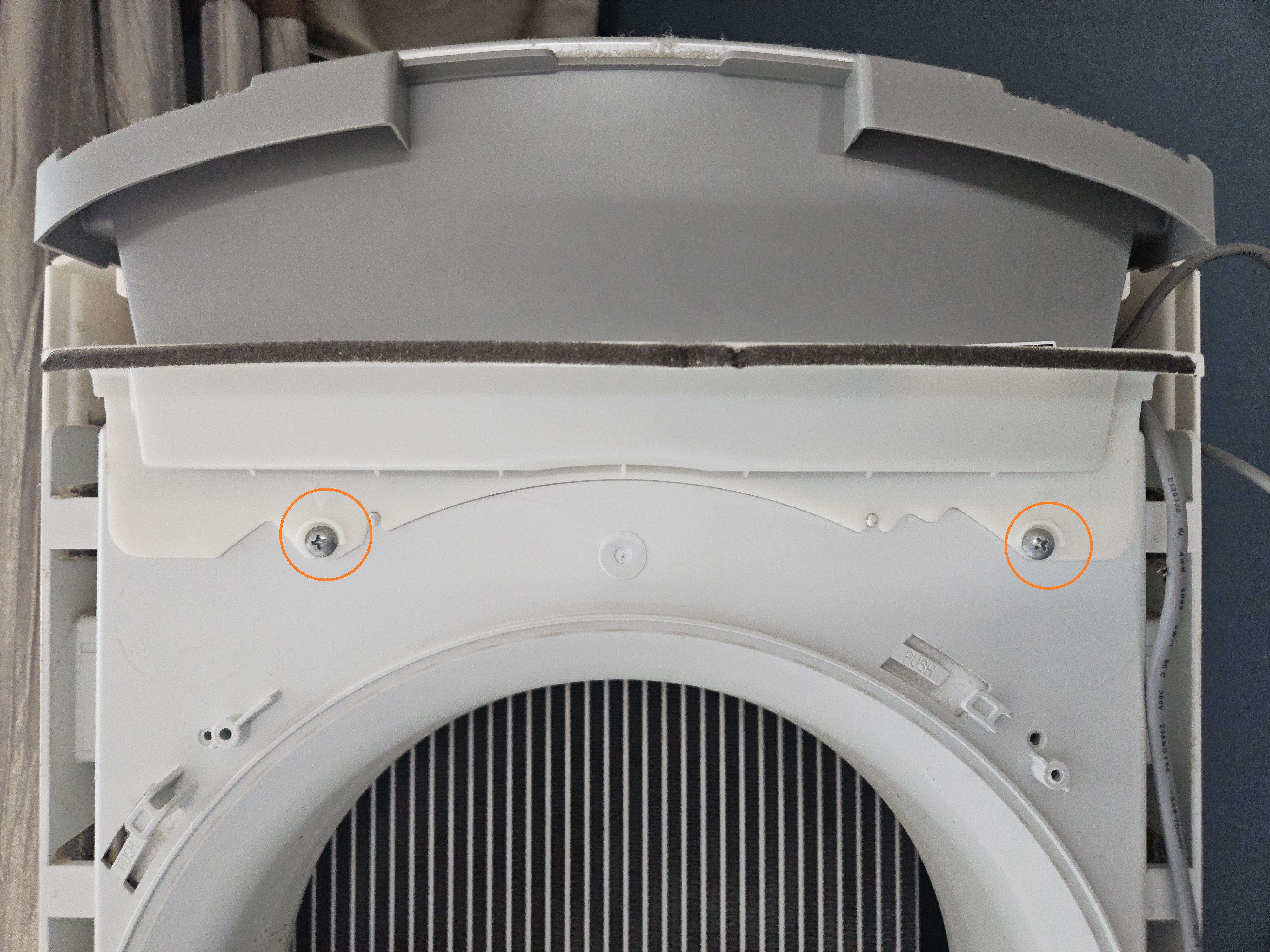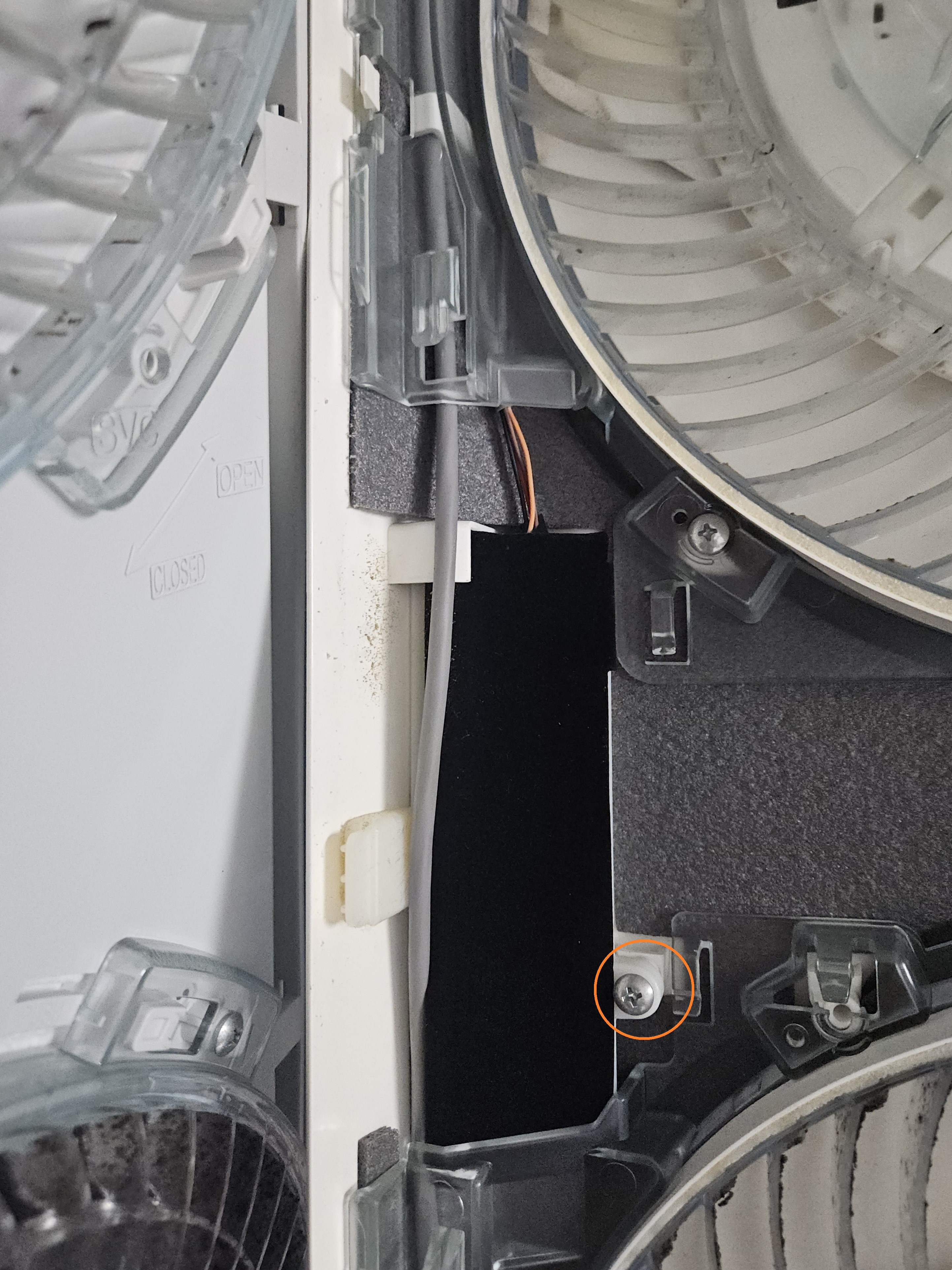 주황색의 나사 두 개를 풀면 속의 덮개도 탈거가 됩니다.