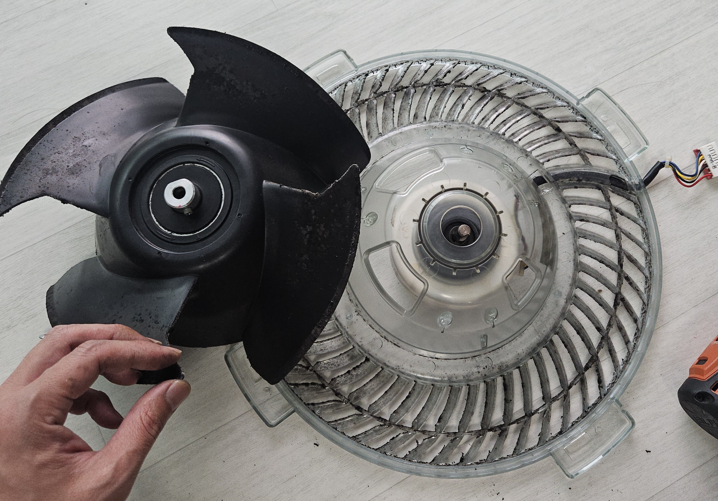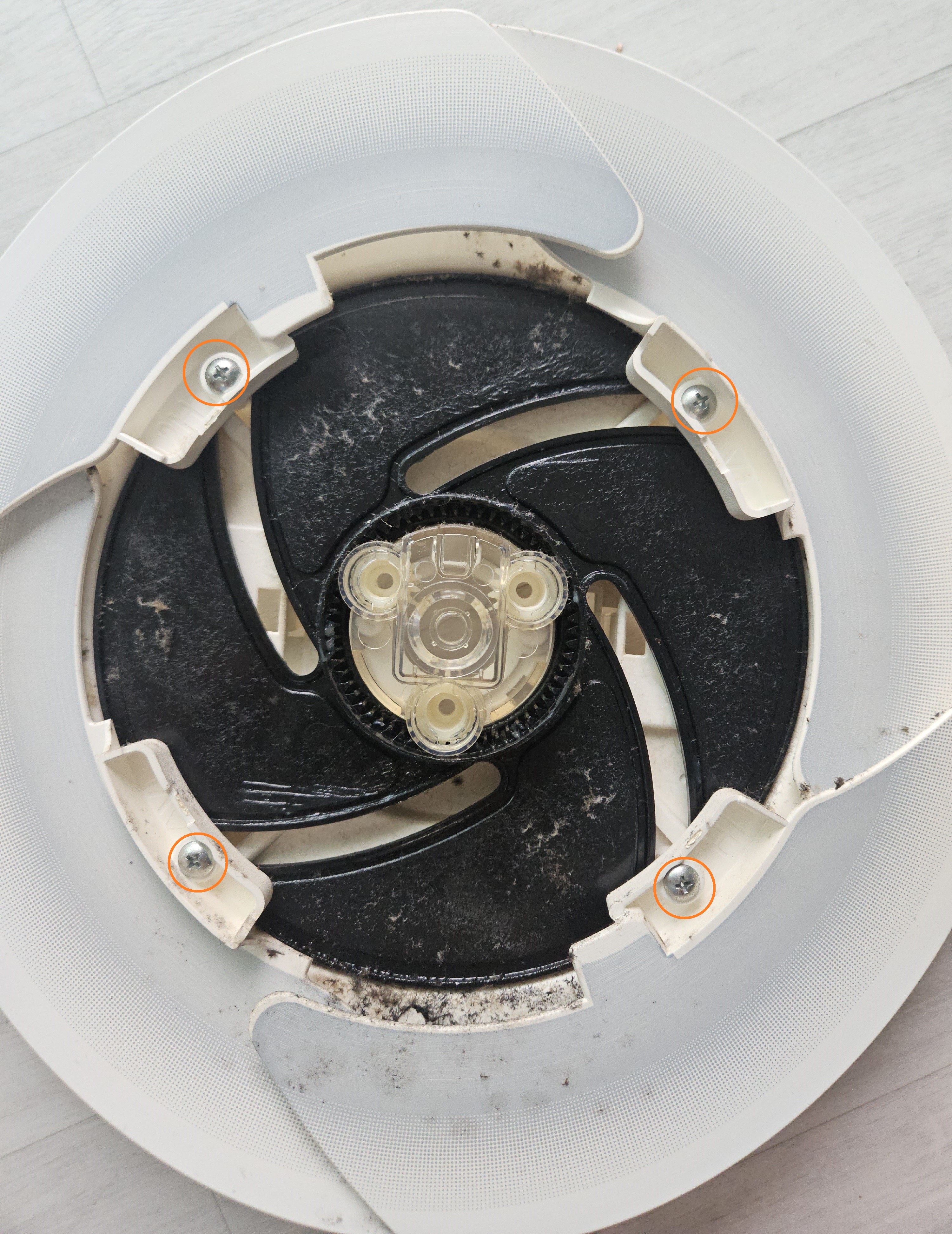 해당 나사를 풀어주면 팬의 날개 부분과 모터 부분도 탈거됩니다.