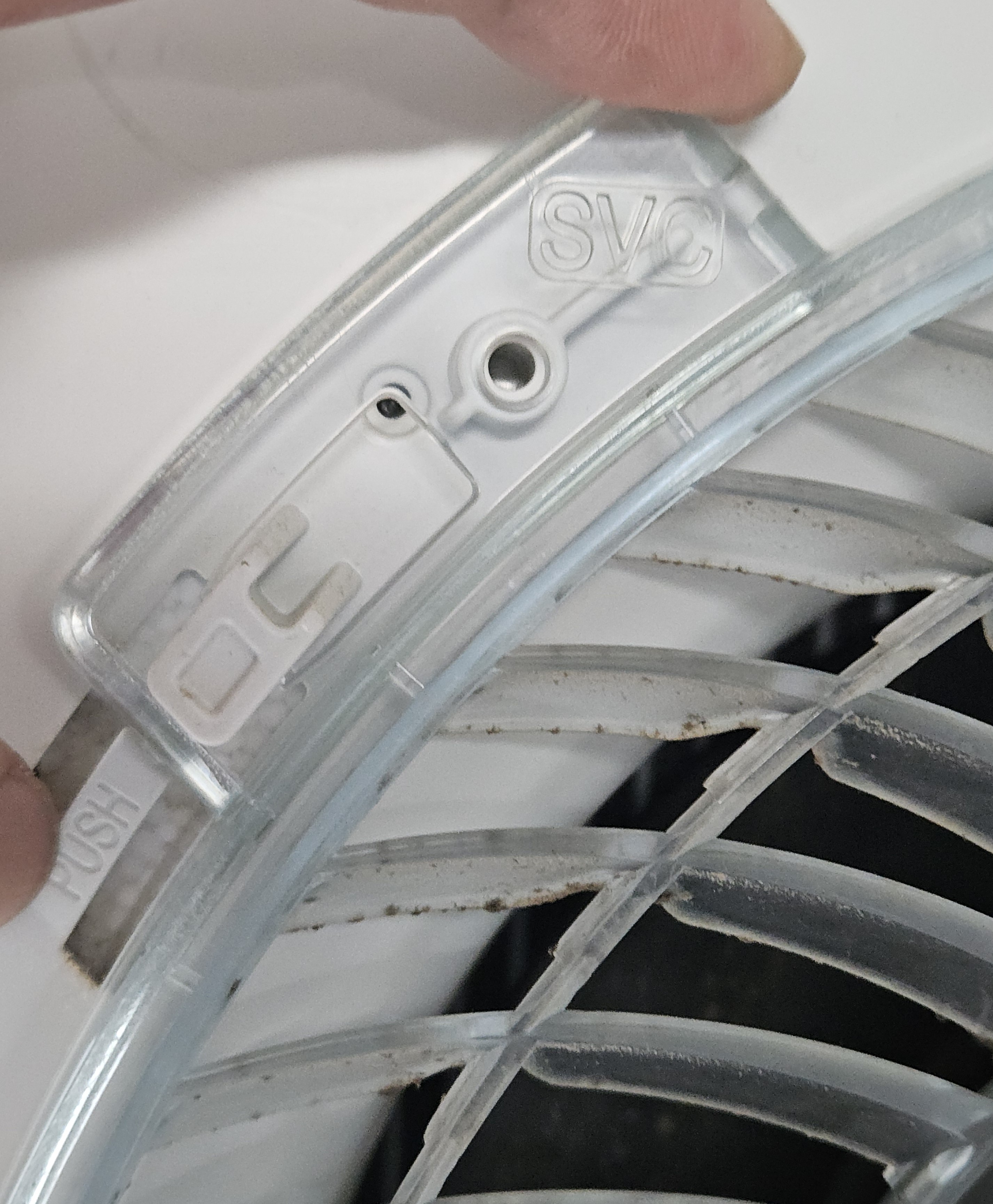 중앙 상단의 나사를 하나 풀고 4방향에 있는 걸쇠를 살짝 들어준 후 돌리면 투명한 부분도 탈거됩니다.