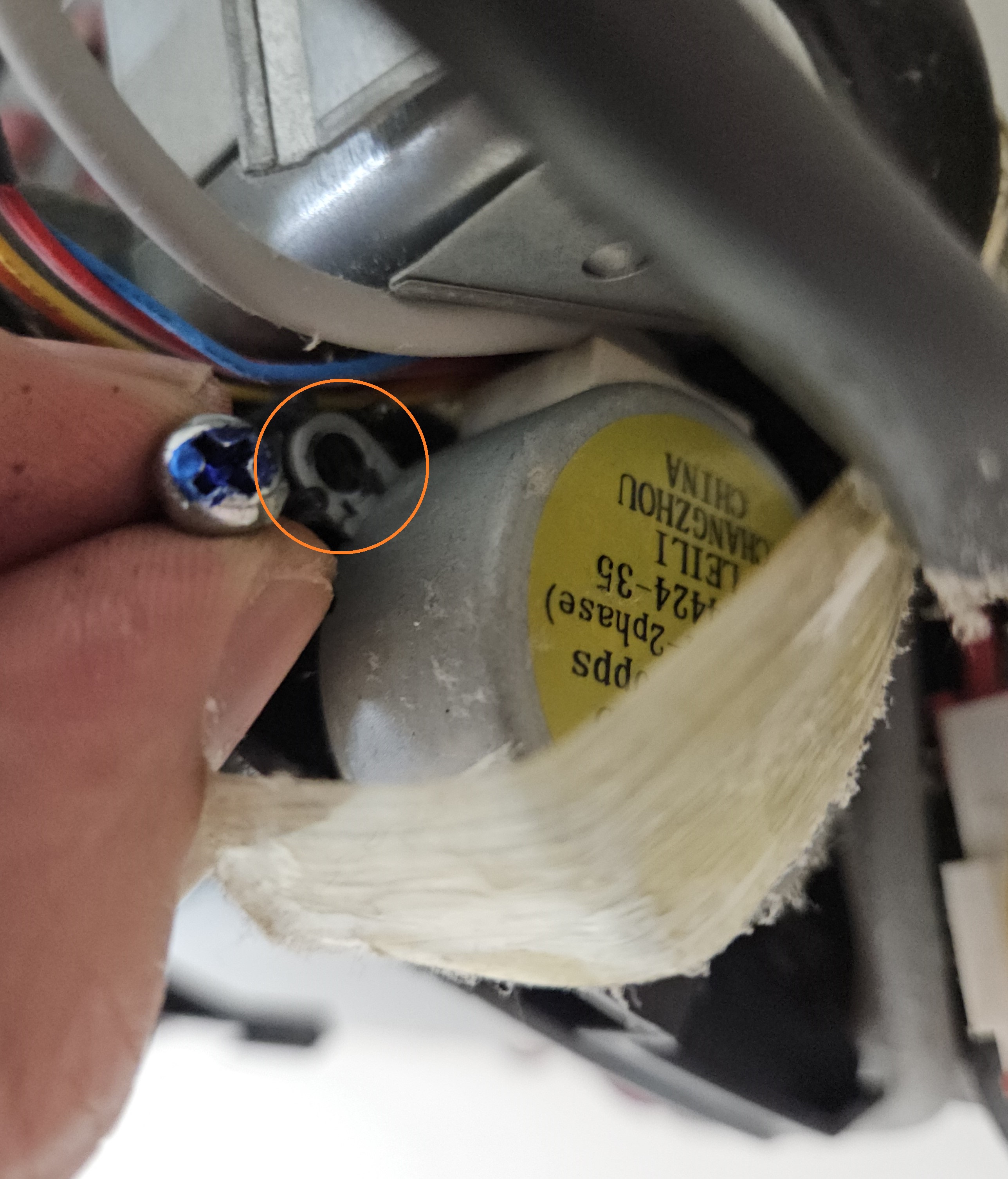 반대편에서 나사를 하나 풀고 화살표 방향으로 힘을 가하여 모터를 분리해 줍니다.