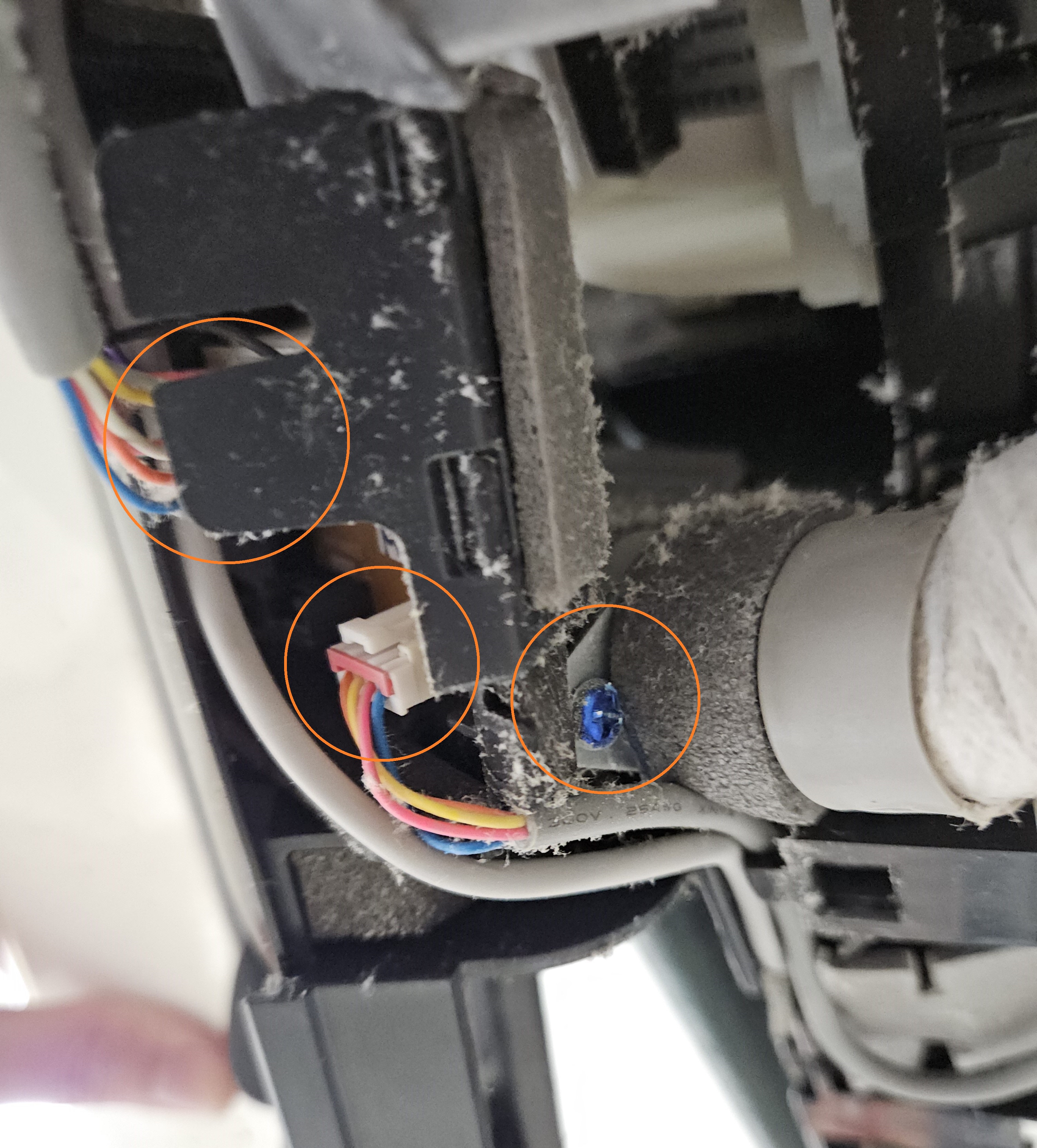 모터 탈거 후 리모컨 수신부의 기판에 연결된 커넥터를 두 개 분리해 줍니다.