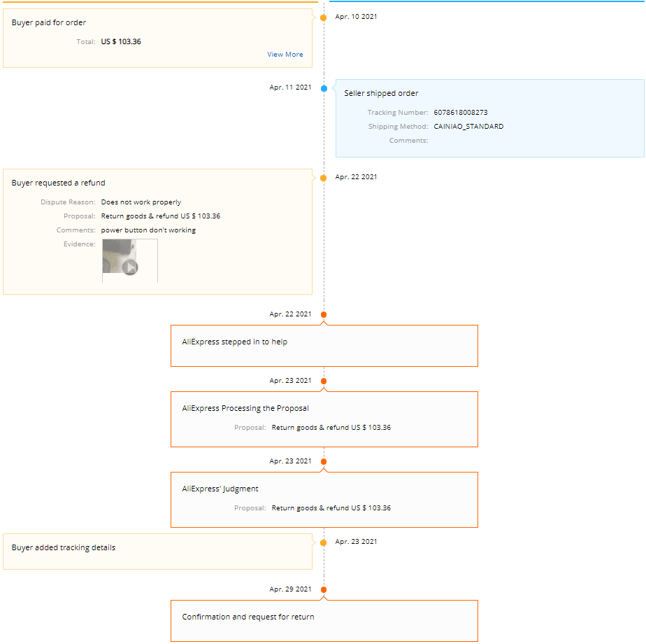 디스풋을 걸었습니다. 환불을 받았습니다. 아래는 환불진행시 dispute 기록입니다. 알리익스프레스에 주문한 Haiway H3000을 수령했으나 불량이었습니다. 추후... 다시 게시물을 작성할 예정이지만, H