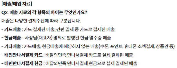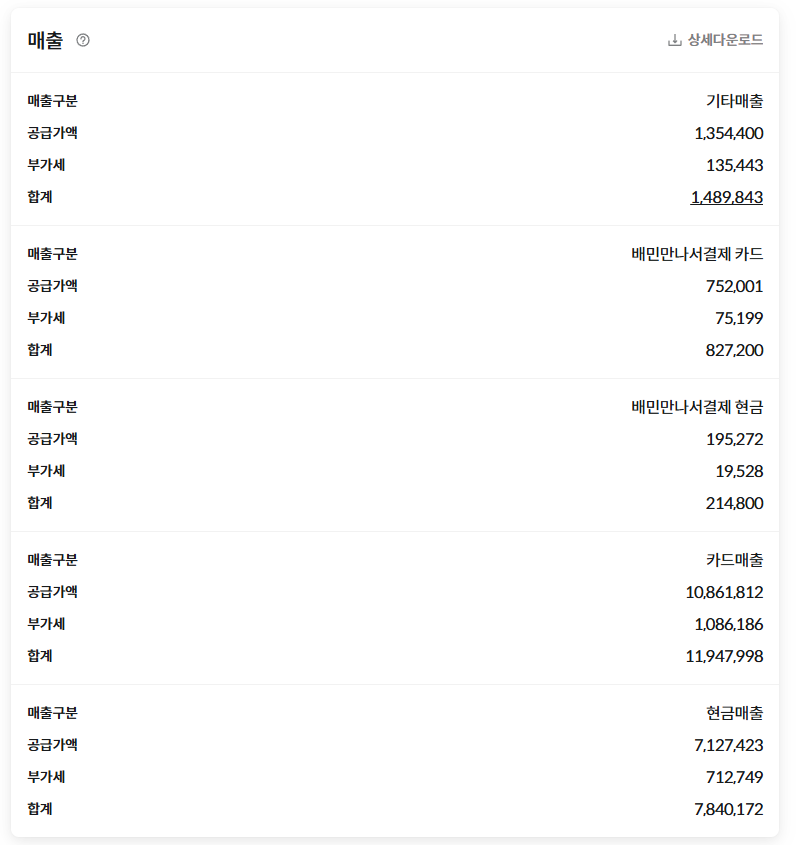 남은 것은 바로 카드매출, 기타매출, 만나서 현금 결제인데...