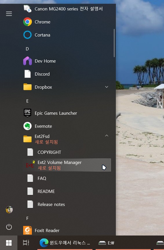 설치된 Ext2 Volume Manager를 실행해 줍니다.