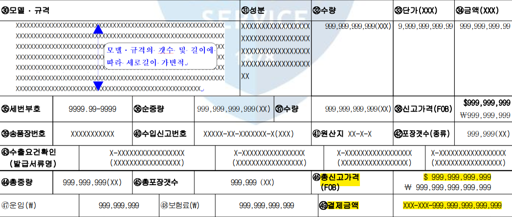 간혹 '총신고가격'을 적는 실무자들이 있는데 신고가격은 FOB 기준으로 환산한 관세청에 신고하는 금액입니다.