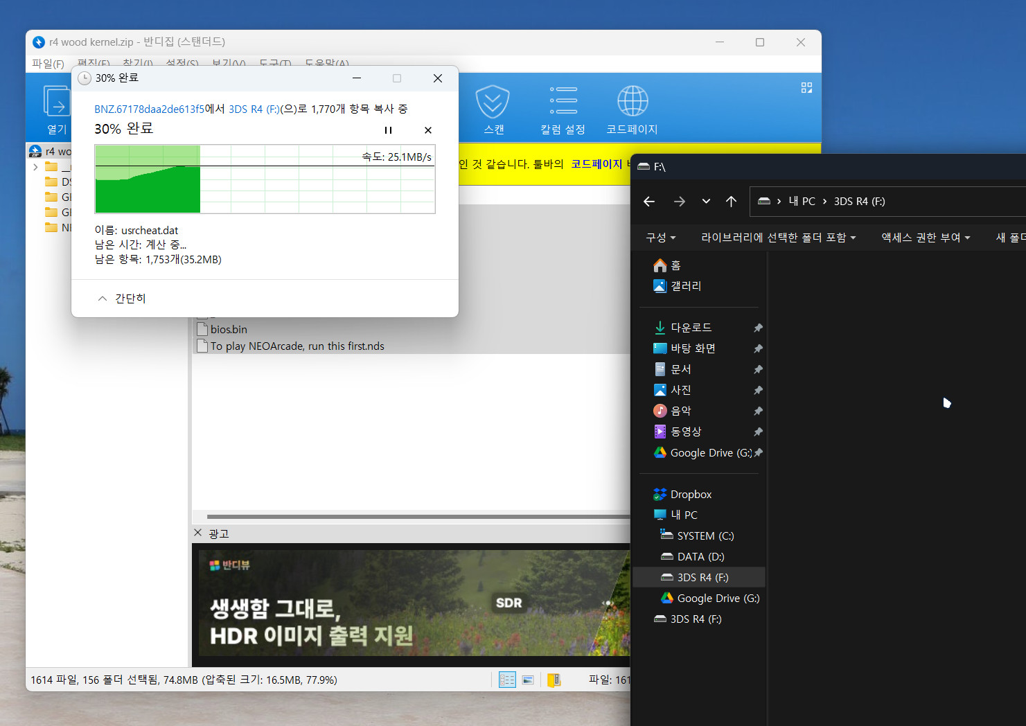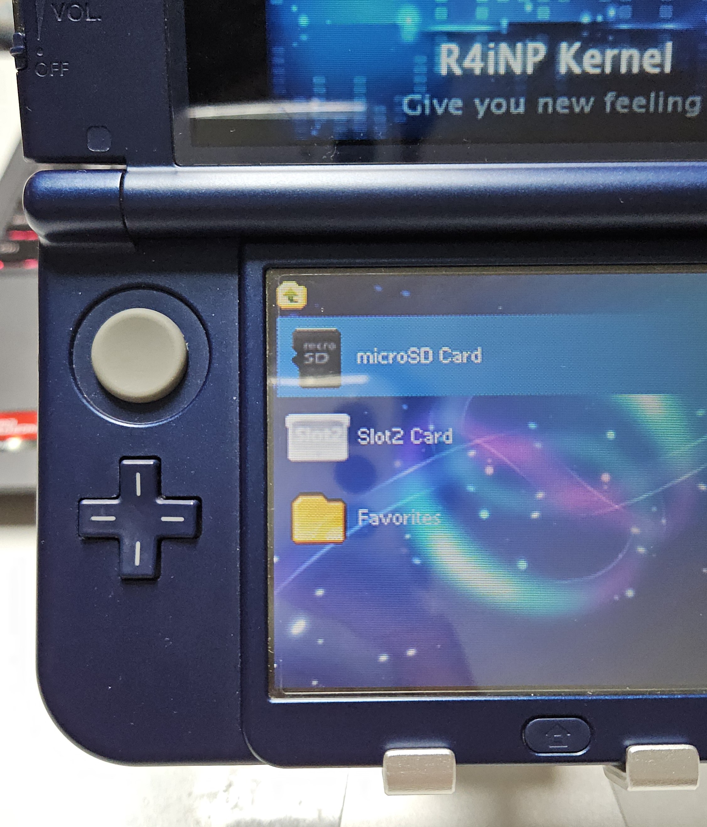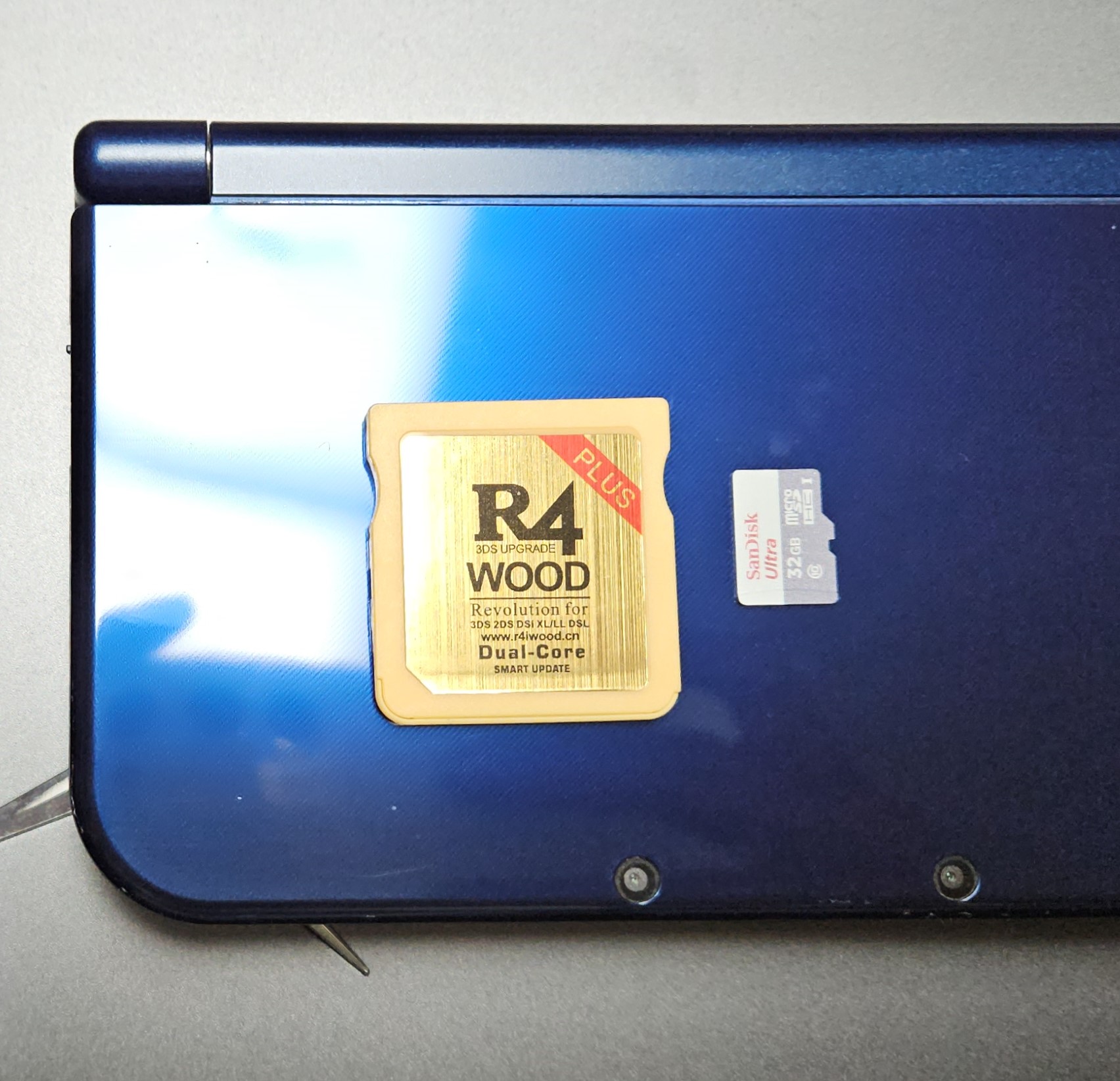 PC에서 SD카드를 분리한 후 R4칩에 삽입하고, R4칩을 3DS에 넣어주었습니다.