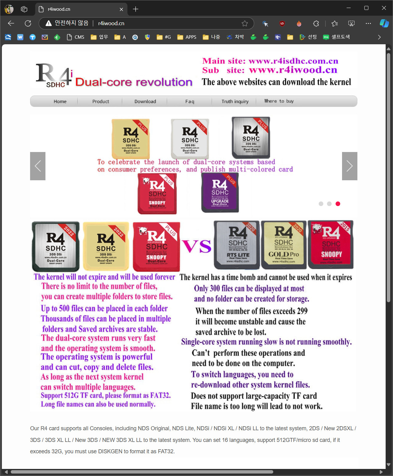 기본 설정을 위해 R4칩에 있는 주소로 들어가 보니 구형 제품과는 다르게 커널에 시간적인 만기가 없고, 파일 개수의 제약이 없고 등등이라고 되어 있습니다.