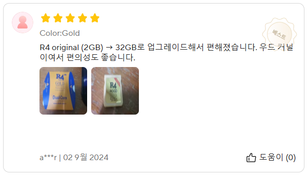 판매페이지에서는 R4 Gold라고 되어 있었는데 수령하고 보니 R4 WOOD라고 되어 있습니다.