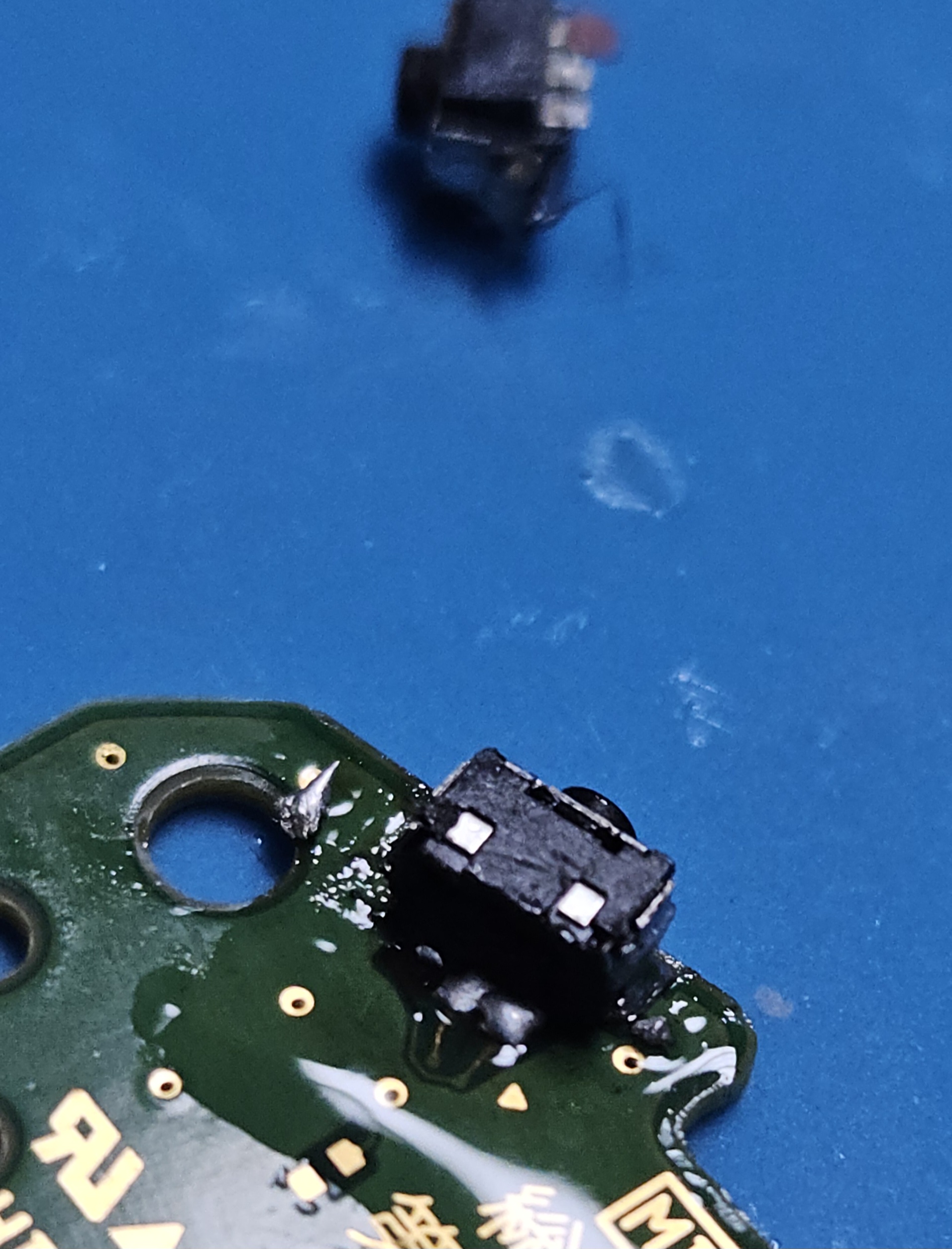 납땜이 되어 있는데 많이 누르다 보면 납땜이 떨어지는 고장이 종종 생기는 부품입니다.