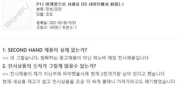 개봉품의 경우 전시품일 수도 있다는 우려도 있으니 신중하게 결정하셔야 할 듯합니다.