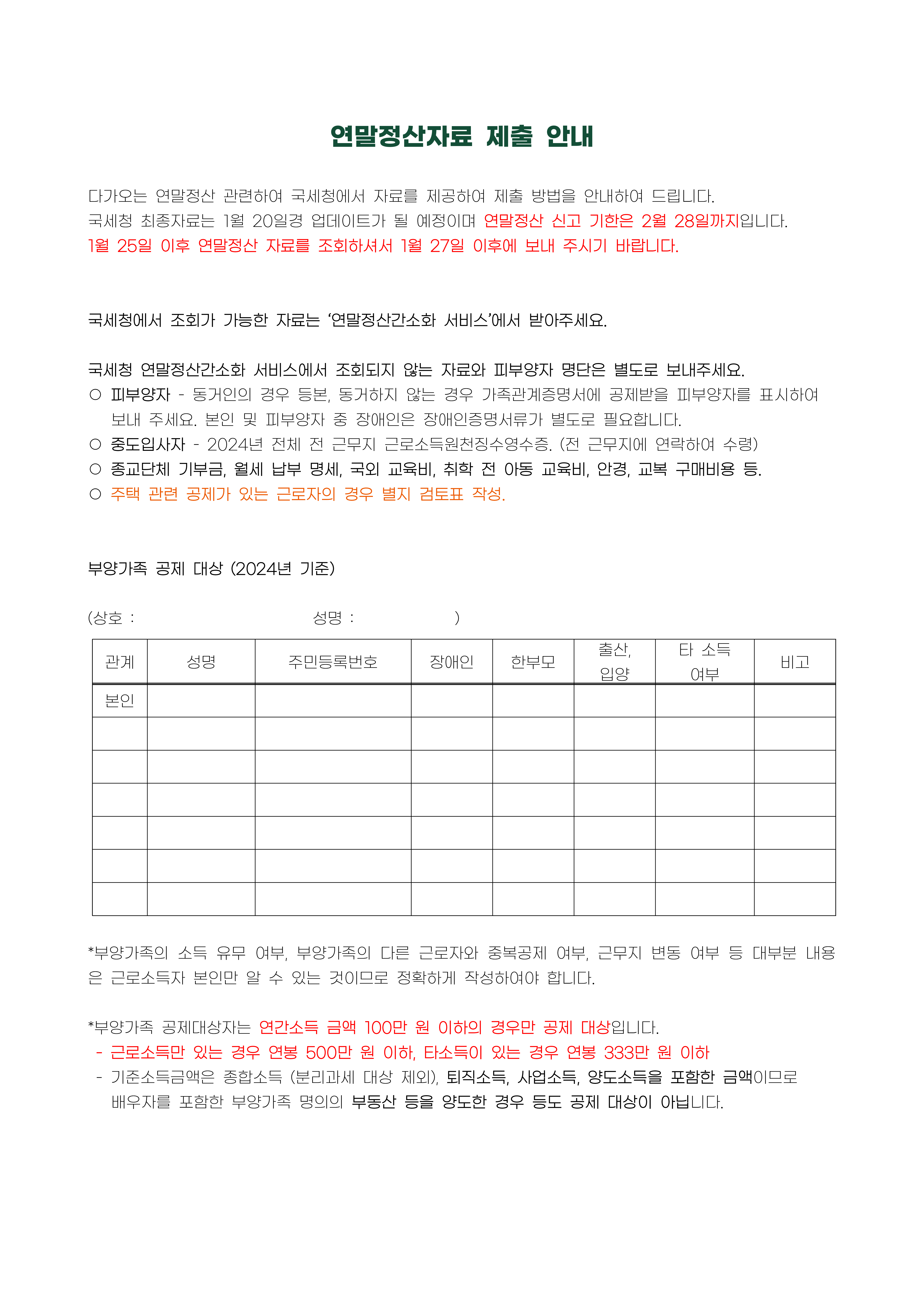 24년 귀속 연말정산자료 제출등 안내 241226.pdf