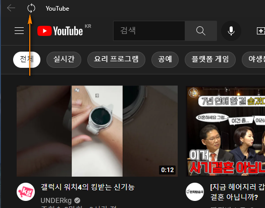 이제 Edge 브라우저에서 유튜브에 접속한 후 주소표시줄을 보면 새로운 아이콘이 보입니다.