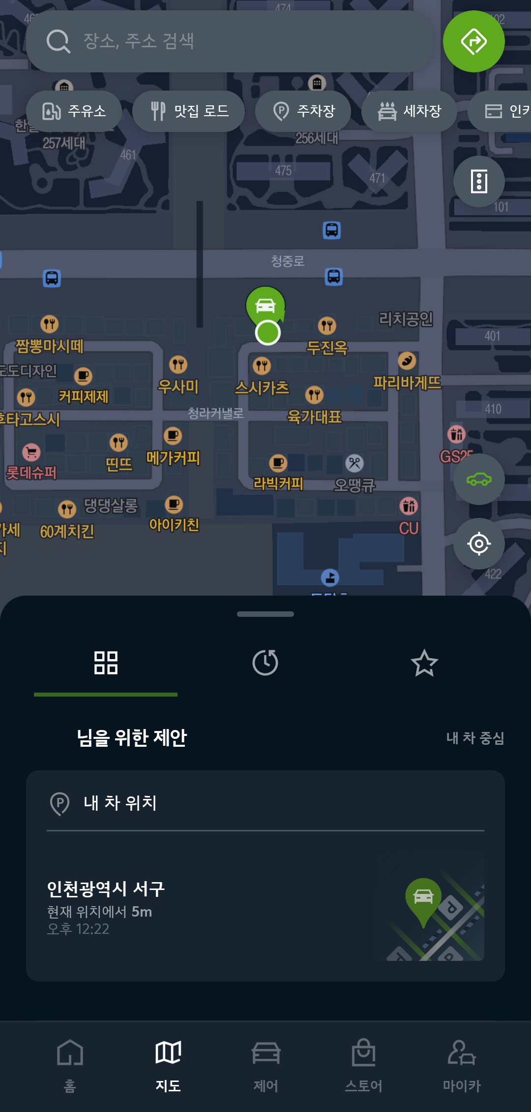 주유가 필요한 경우에는 근처 주유소의 목록과 유가 정보도 띄워줍니다.