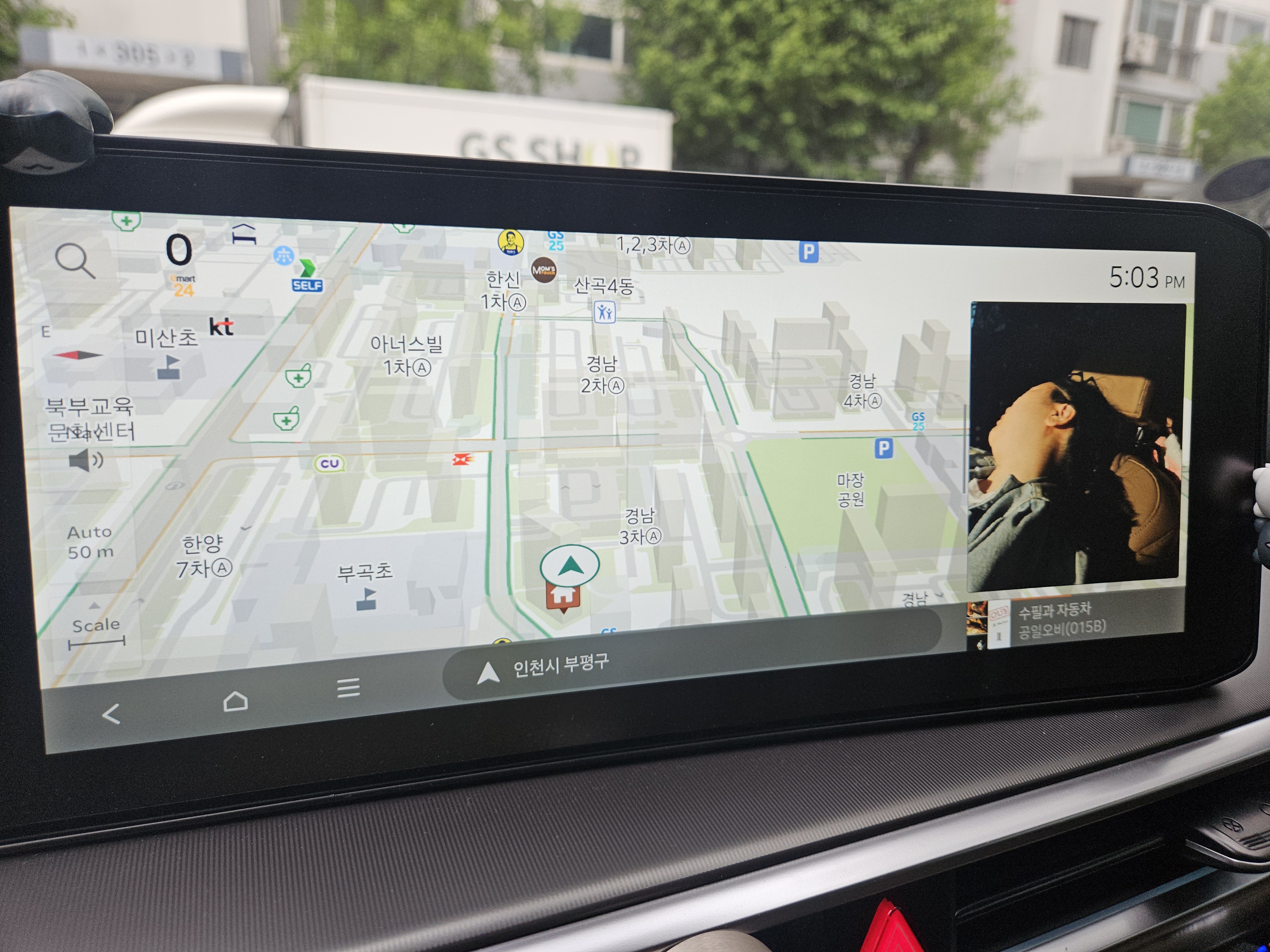 주행 중에 네비를 켜면 이렇게 디지털 액자에 업로드된 사진을 보면서 포근한 주행을 할 수 있습니다.