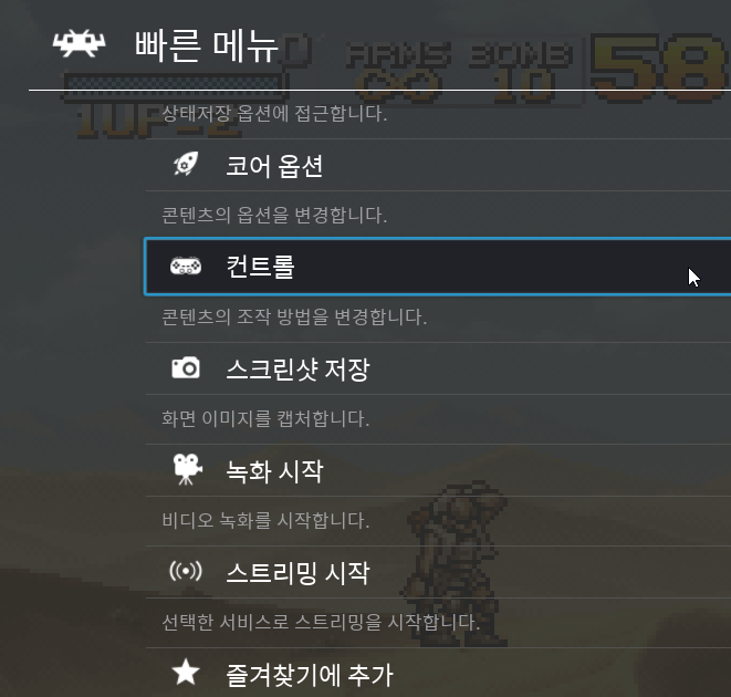 이 옵션은 본문 상단의 갈무리 화면인 메탈슬러그와 같은 게임에서 사용하기 좋습니다.