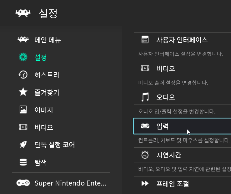 기본적인 터보 설정은 '설정' 메뉴 하위의 '입력' 메뉴에서 세팅할 수 있습니다.