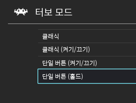 위 사진을 보면 클래식과는 다르게 '터보 지정 버튼'이라는 메뉴가 있으며, 아래 작은 글자로 적힌 설명대로 다른 토글 키로 터보를 활성화하는 경우 발사를 연타할 버튼을 말합니다.