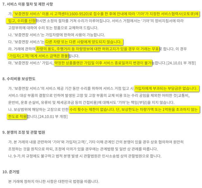 부품별로 보증을 해주지 않는 것과 별도로 또 보증이 제한되는 경우가 있습니다.