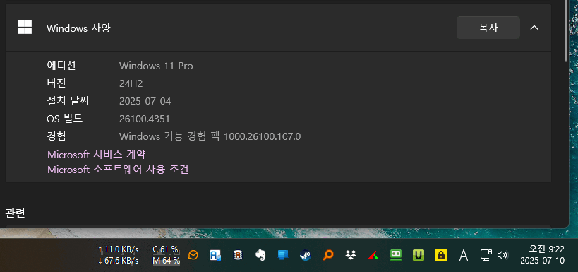 업데이트된 버전은 24H2인데 작업표시줄 관련하여 개인적으로 치명적인 문제점이 있습니다.