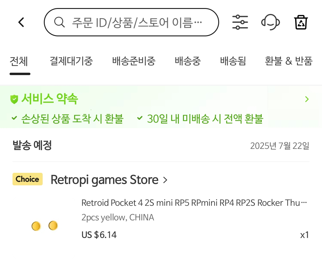 레트로이드 공홈이 아닌 알리익스프레스에서 주문하는 것은 두 가지 장점이 있는데, 먼저 해당 판매자의 제품은 초이스 제품으로 문제가 있는 경우 별도 반품 배송비를 부담하지 않고 반품이 쉽다는 점입니다.