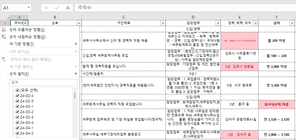 기본인 세무사회의 구인공고와 워크넷의 공개된 구인 공고의 개인정보가 없는 공개된 정보를 취합하였으며, 양쪽에 둘 다 공고가 있는 경우에는 한 개의 글로 가정하였습니다.