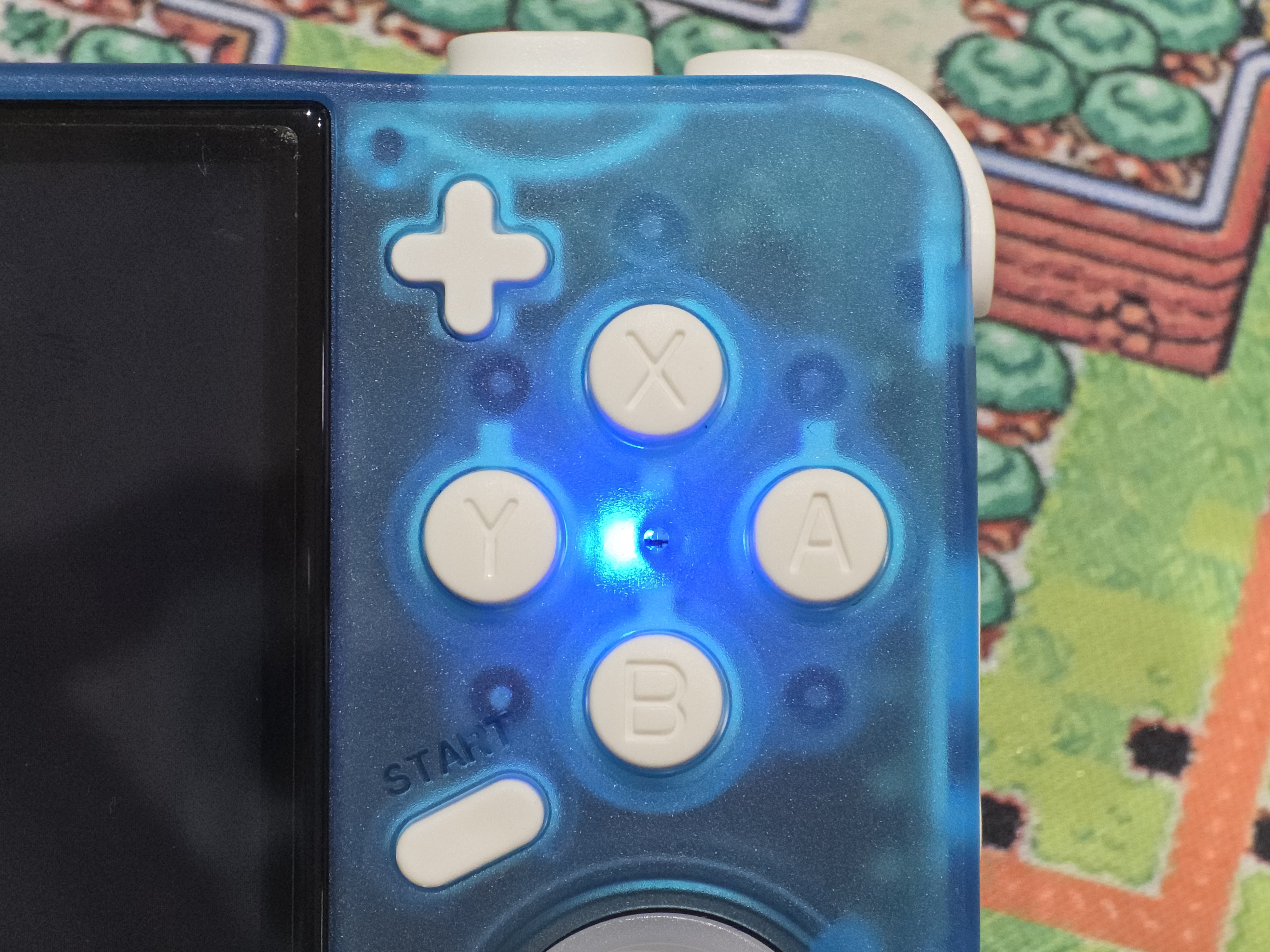 정확히 R36S처럼 눈뽕이 심한 LED가 박혀 있고, LED 앞에는 또 R36S처럼 굳이 구멍도 뚫어두었는데, LED와 구멍이 일직선상에 위치하지 않아 다행히 게임 중에는 R36S처럼 눈뽕을 당하지는 않습니다.