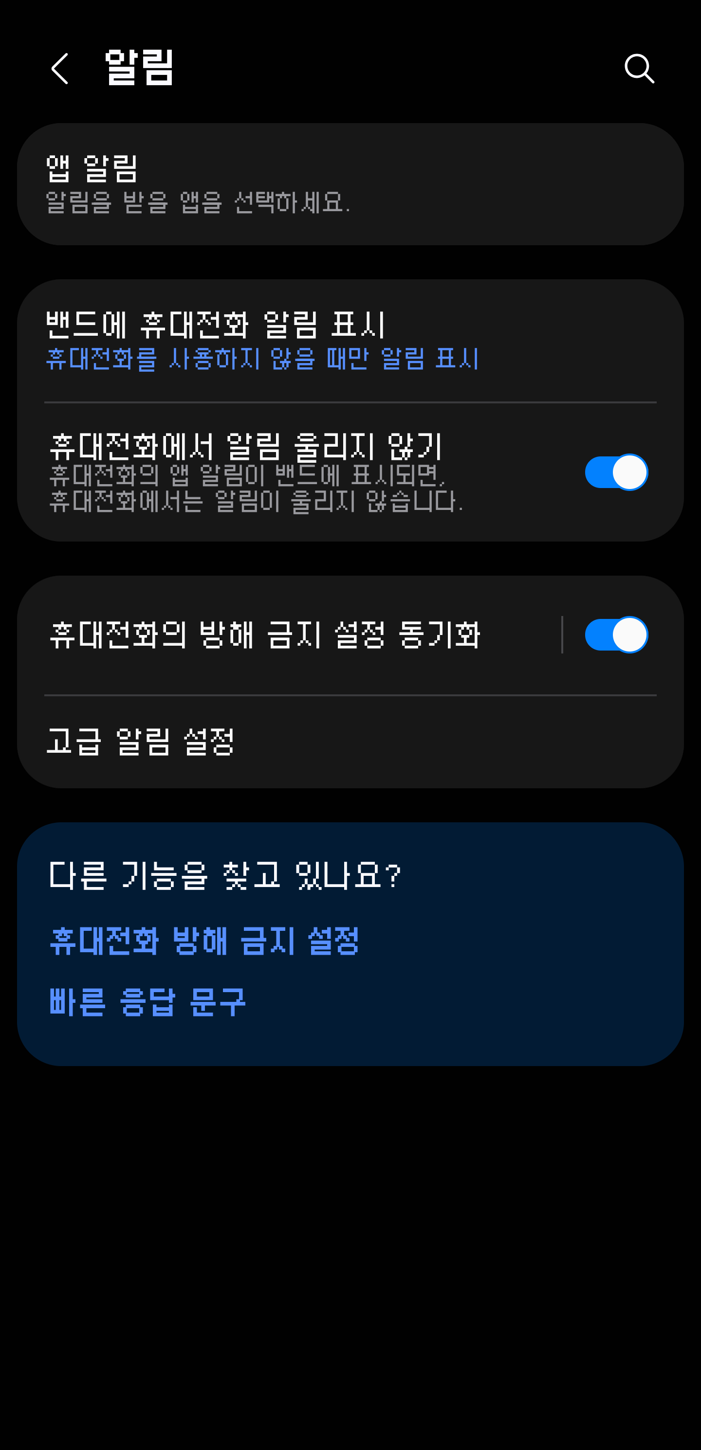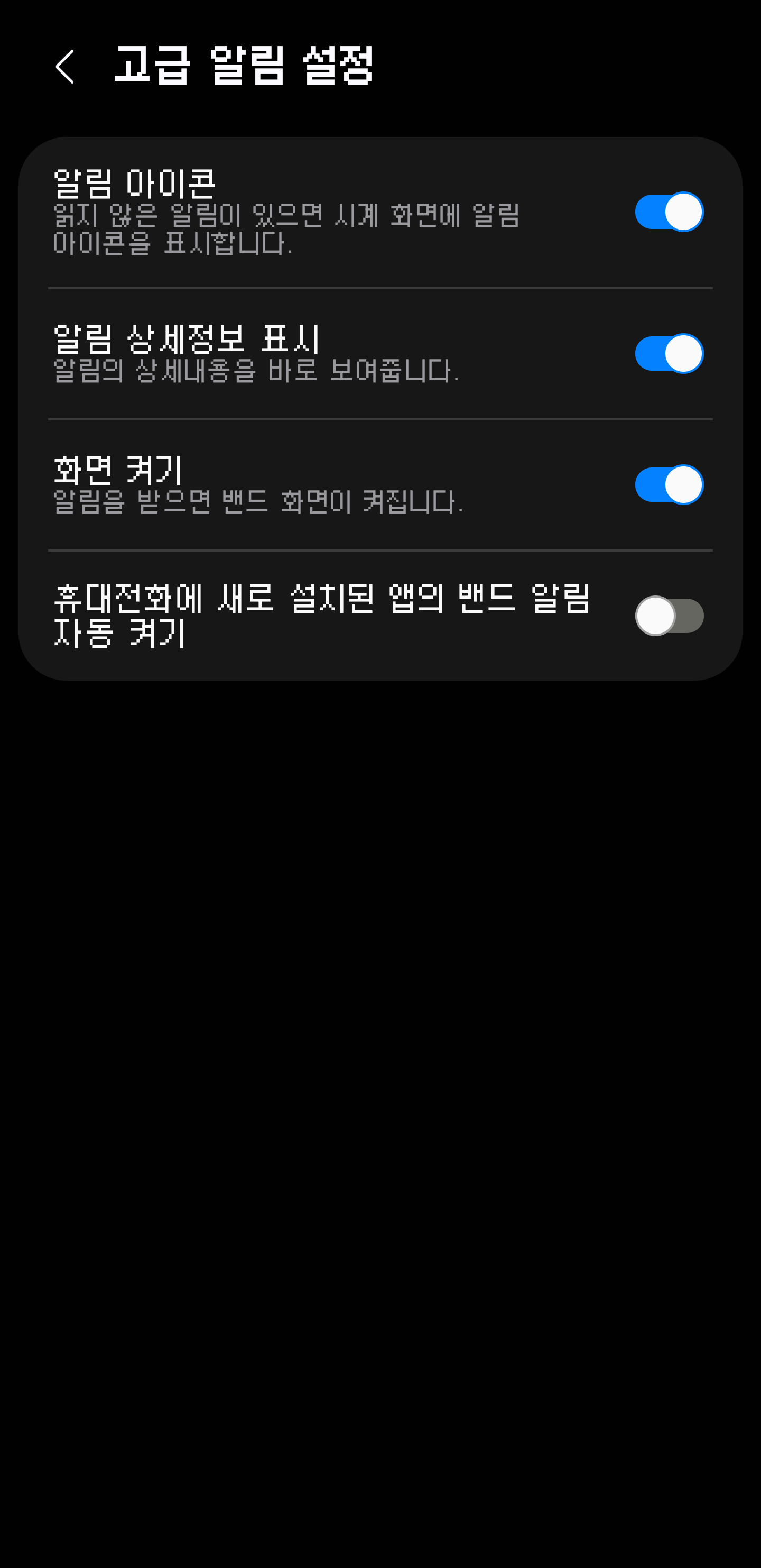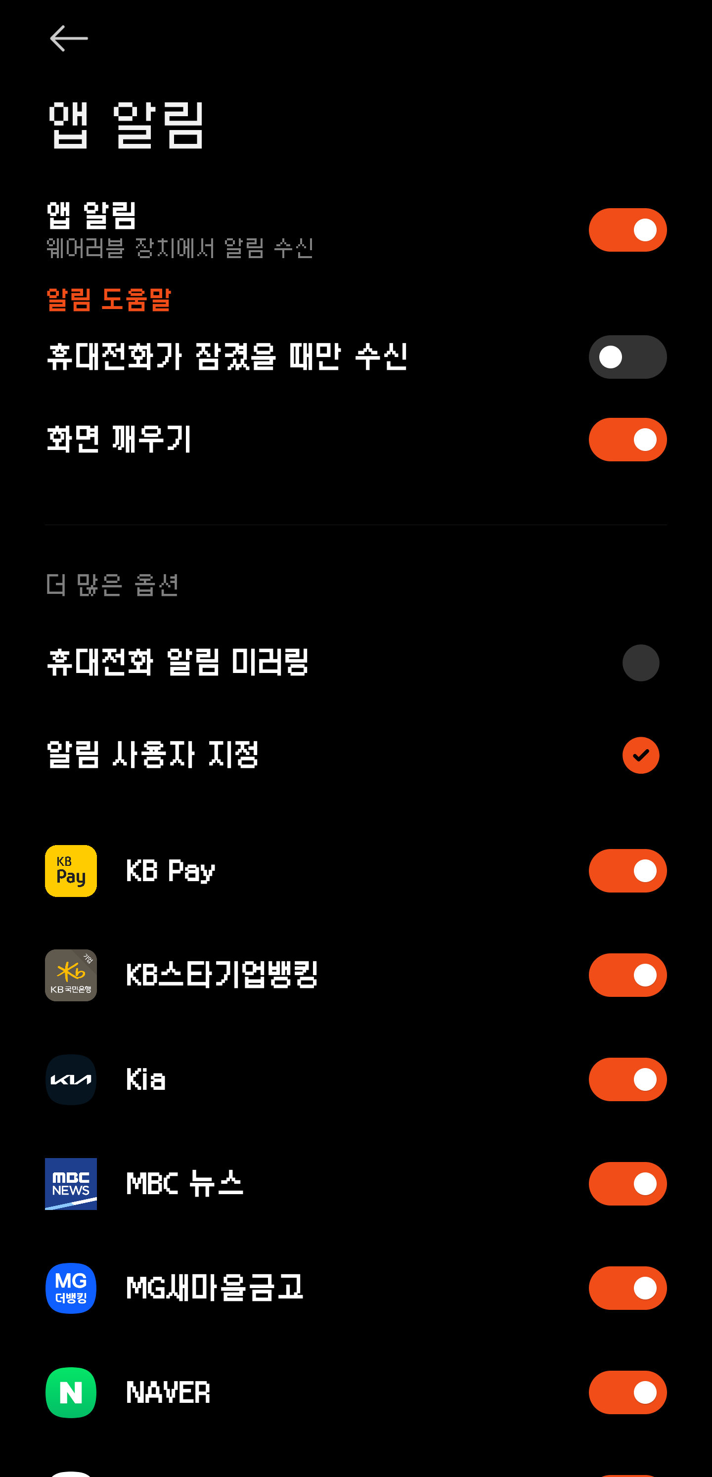 제 경우 휴대전화에서만 수신하는 알림과 밴드에서도 수신하는 알림을 구분하여 사용하는 입장이라 해당 기능은 불필요한 알림을 너무 많이 받게 되는 문제가 있습니다.