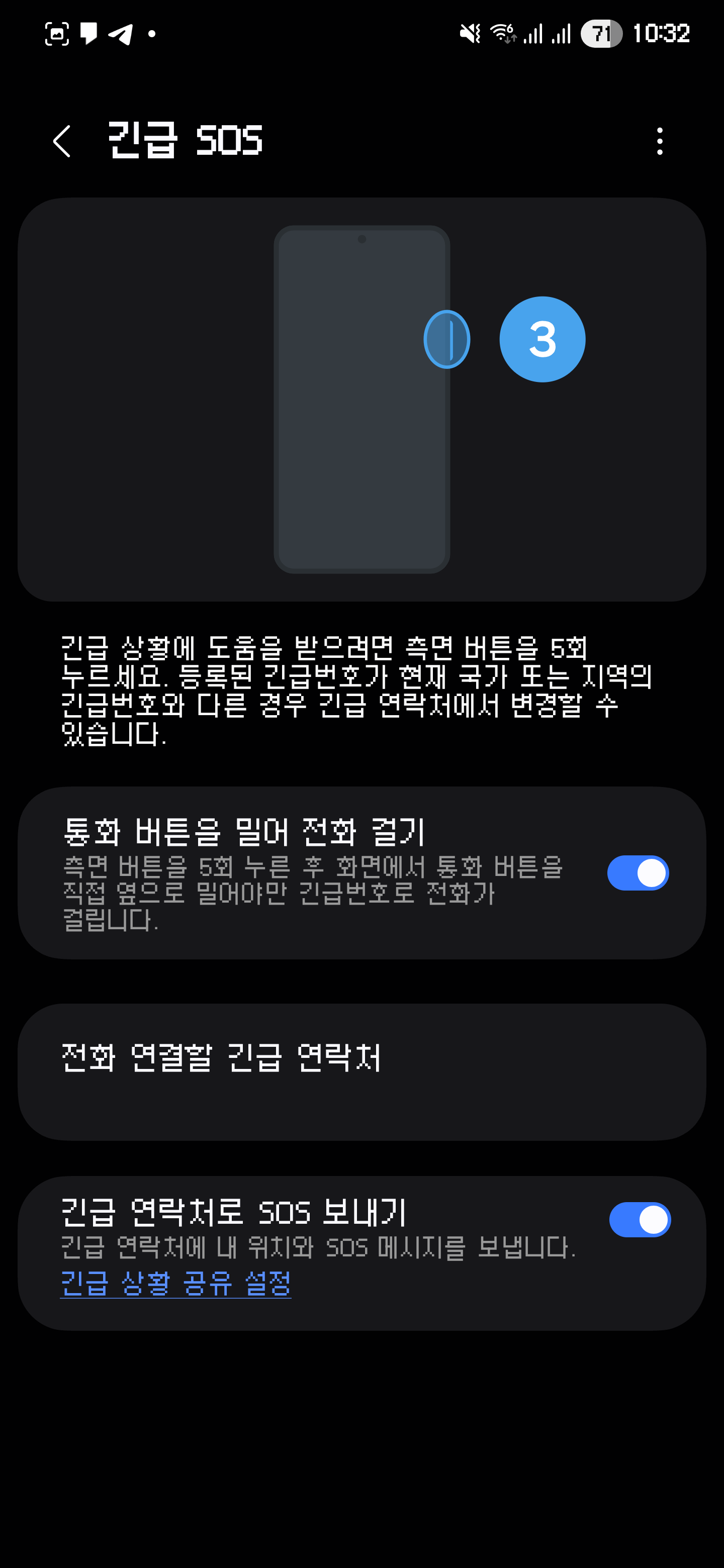 물리 버튼이 하나 있는 것은 아예 구현이 불가능한 기능의 차이가 하나 있는데 물리버튼을 연타하여 긴급 연락이 가능합니다.