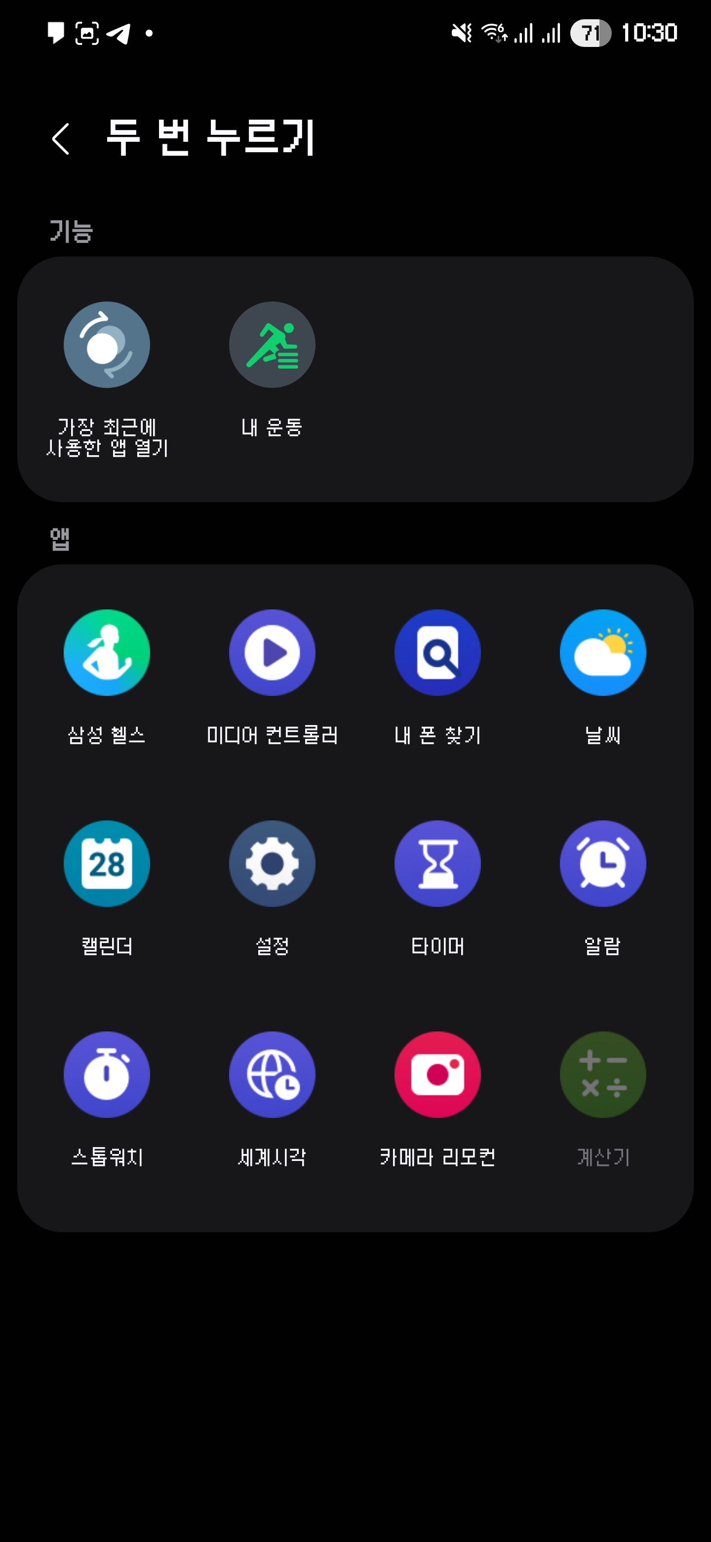 홈 버튼을 두 번 눌러 특정 기능을 바로 실행하는 것도 가능합니다.