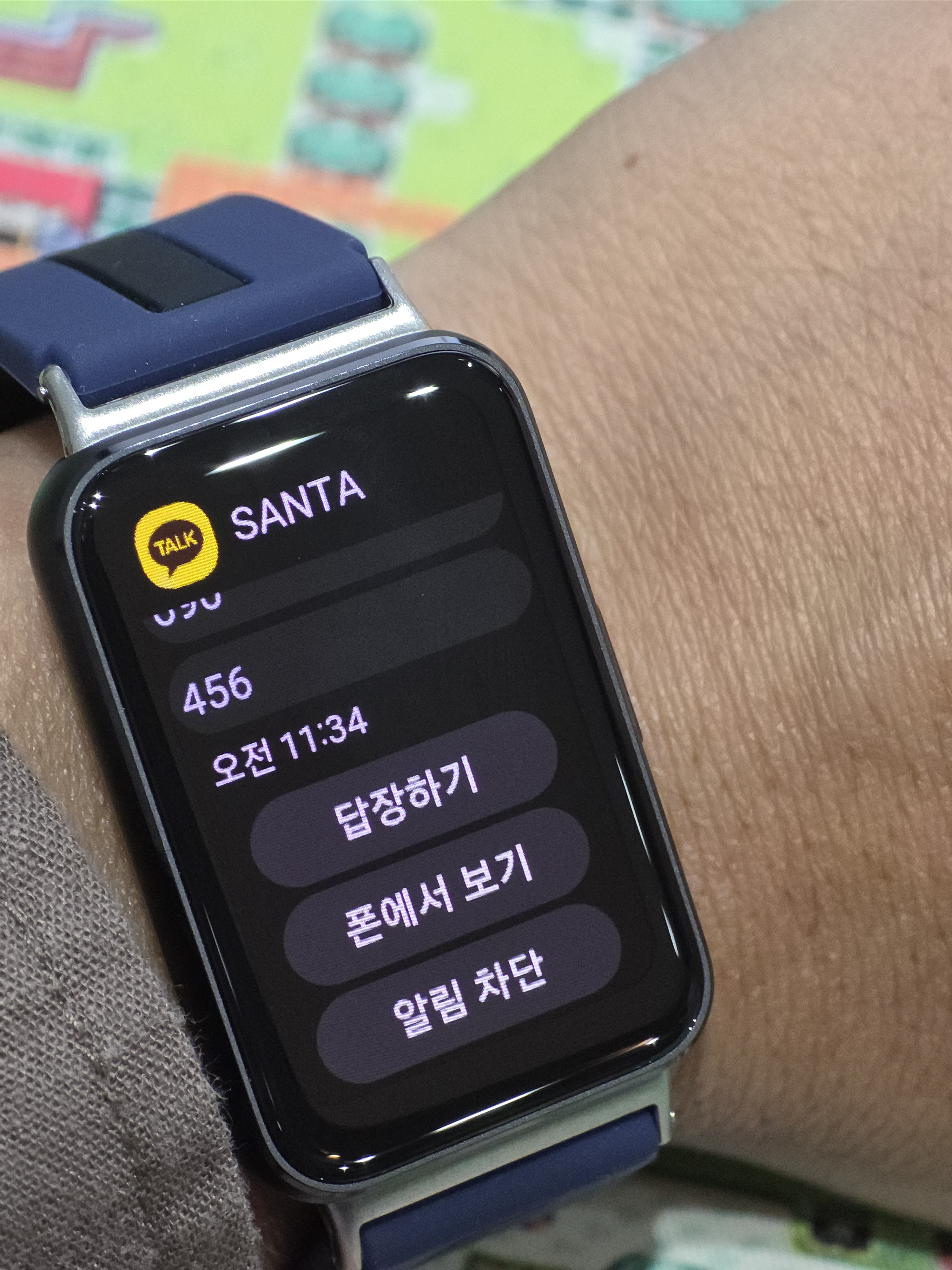 카톡의 알림에 답장도 가능하며 알림을 수신 후 휴대전화를 열어서 내용을 확인해야 하는 경우 밴드의 알림 창에서 바로 휴대전화의 앱을 구동할 수 있어 굳이 휴대전화를 켜도 앱을 실행하는 번거로운 반복되는 행위도 줄어듭니다.
