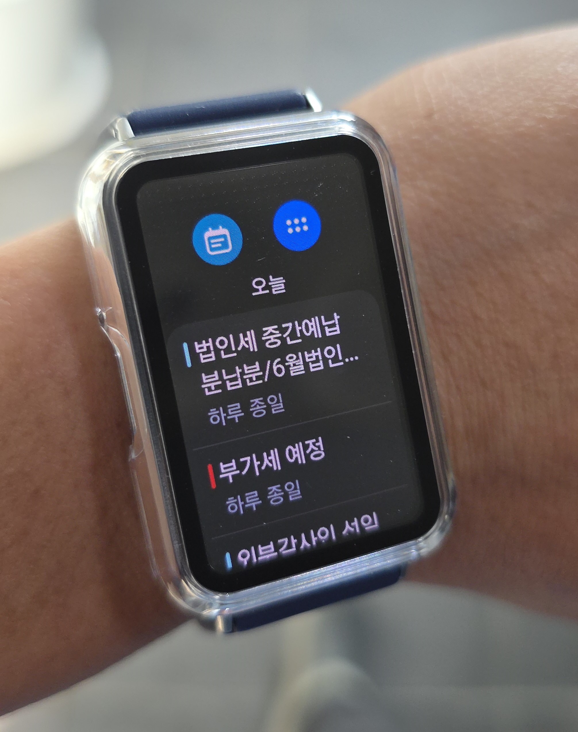 미밴드와 다르게 갤럭시의 캘린더와 바로 연동이 되어 일정을 확인하기도 더 쉬워졌습니다.
