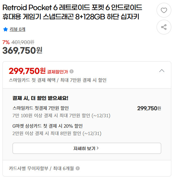 신규 카드 발급의 암암리에 거래되는 캐시백은 원래 카드를 한 장 만들고 요건을 채우면 10~20만 원의 캐시백을 해주는 것이 일반적이지만, 이 카드는 그런 혜택은 없고 위와 같이 G마켓에서 연말까지 최대 8만 원가량 할인을 받을 수 있습니다.