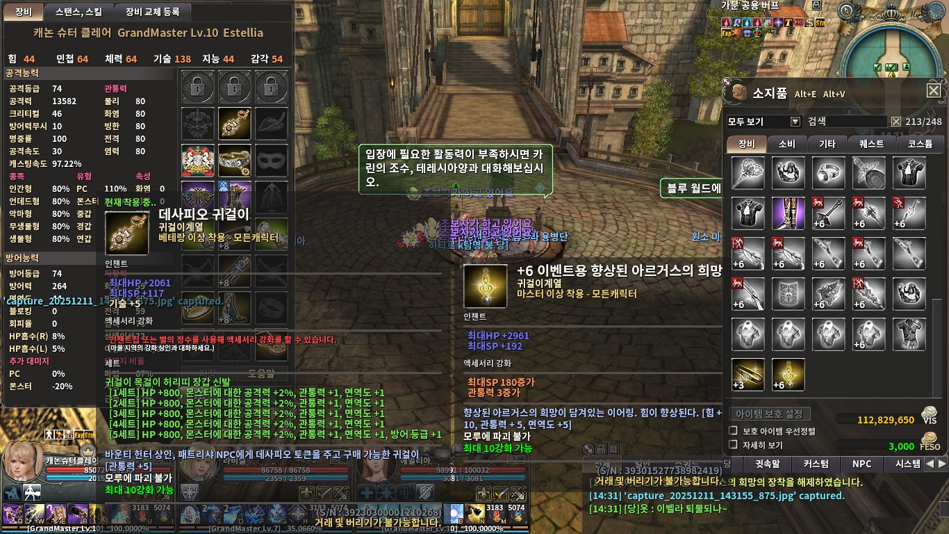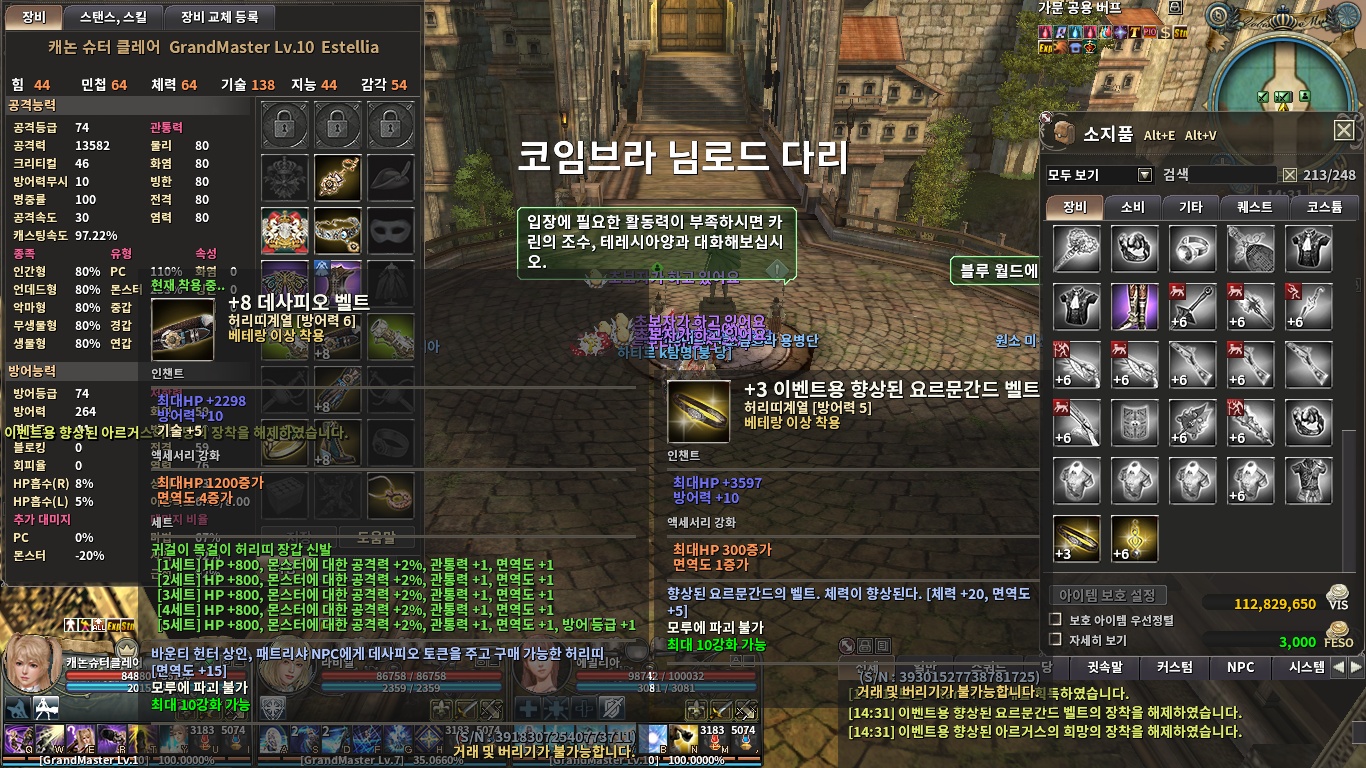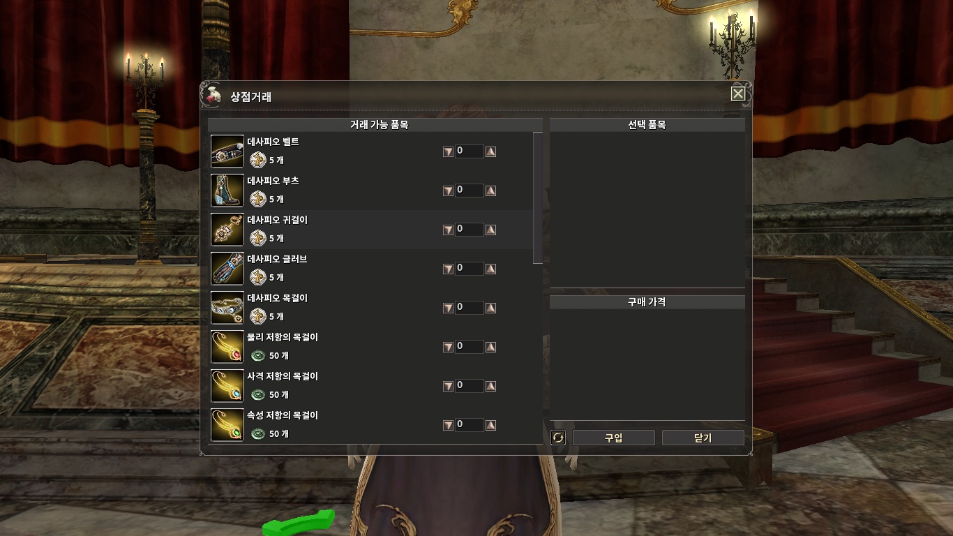 데사피오 코인으로 바운티 헌터 길드 내에 있는 상인에게 액세서리를 사서 강화 및 인챈트 하여 데사셋을 맞추며 사냥을 지속해 가면 됩니다.