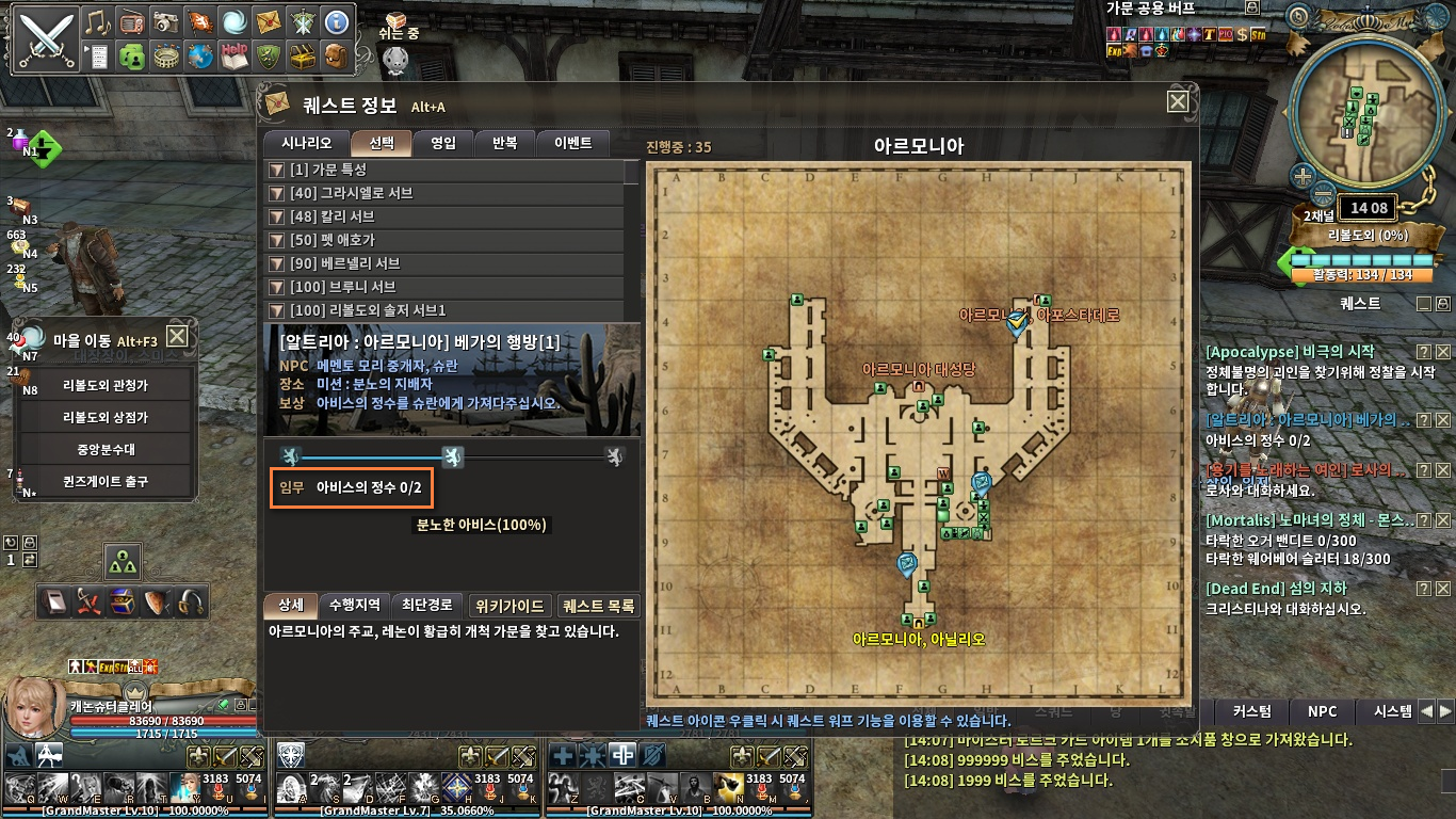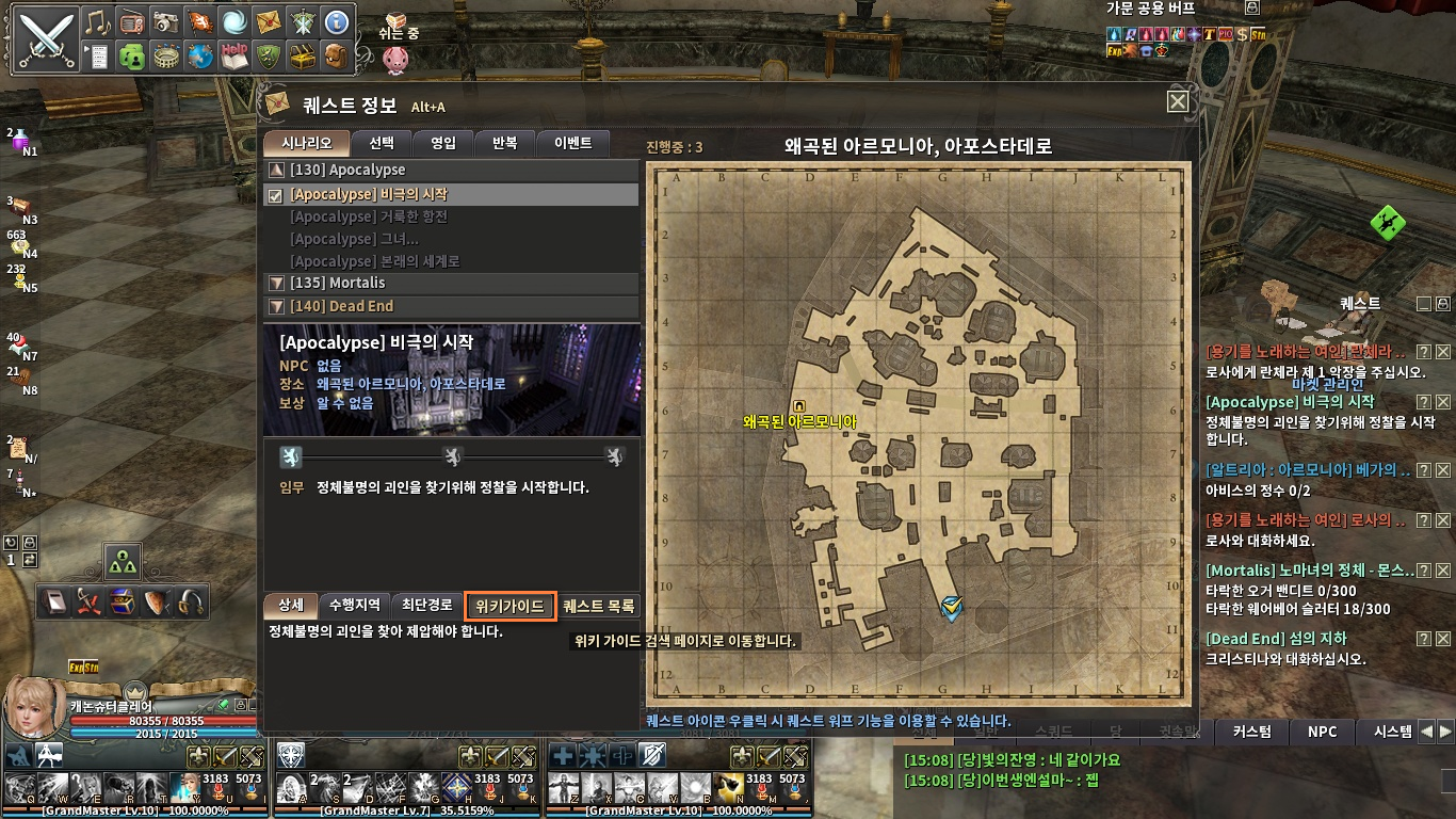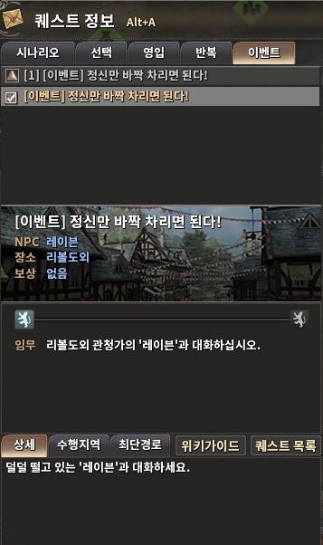 시나리오를 포함하여 각종 퀘스트 정보는 Alt+A 단축키로 확인할 수 있습니다.