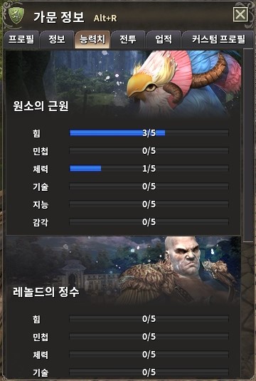 매일 방문하는 님로드 다리에서 원소 미션을 진행하여 가문 전체의 스탯을 올릴 수도 있습니다.