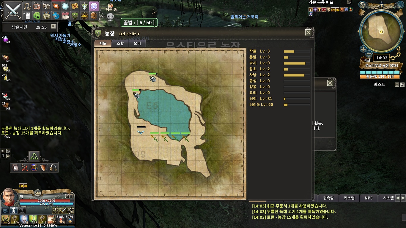 일부 퀘스트에서는 킵으로는 시간이 오래 걸려 이동을 하며 사냥을 하는 것이 아이템 수급이 더 빠른 경우가 있는데, 이런 경우에는 Alt+Z 키를 이용하여 해당 지역의 지도를 연 후, 지도상의 이동하려는 곳에 마우스 커서를 위치하고 우클릭을 하면 해당지역까지 이동하며 사냥을 합니다.