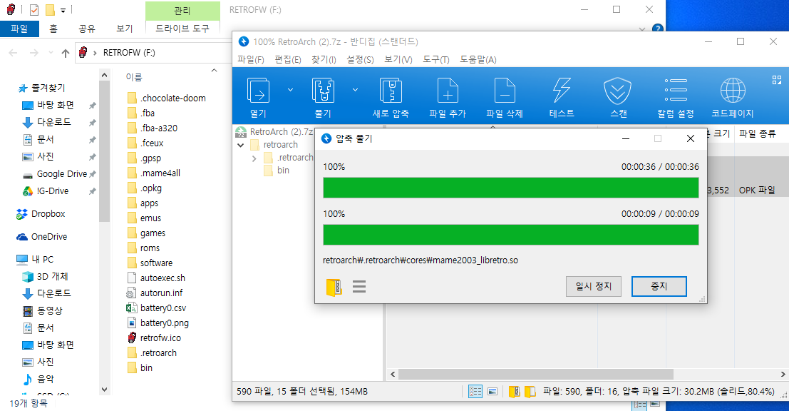 retroarch 설치가 완료되었습니다.