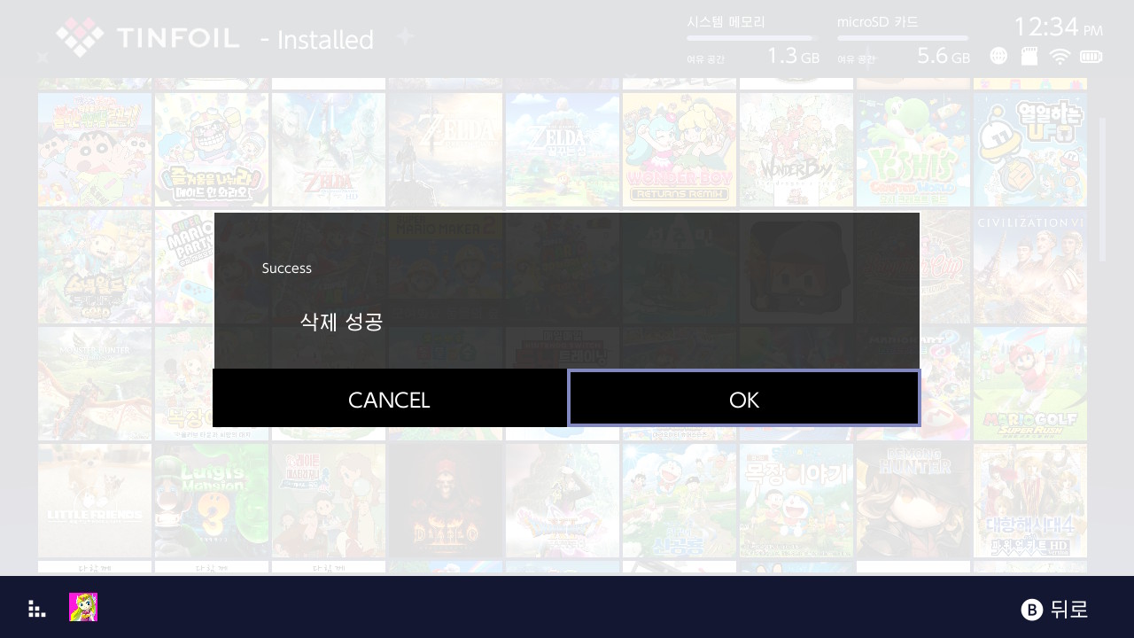 TINFOIL을 실행한 후 'installed' 메뉴에서 문제를 해결하려는 게임으로 커서를 위치한 후, 'X' 버튼을 눌러 삭제를 진행합니다.