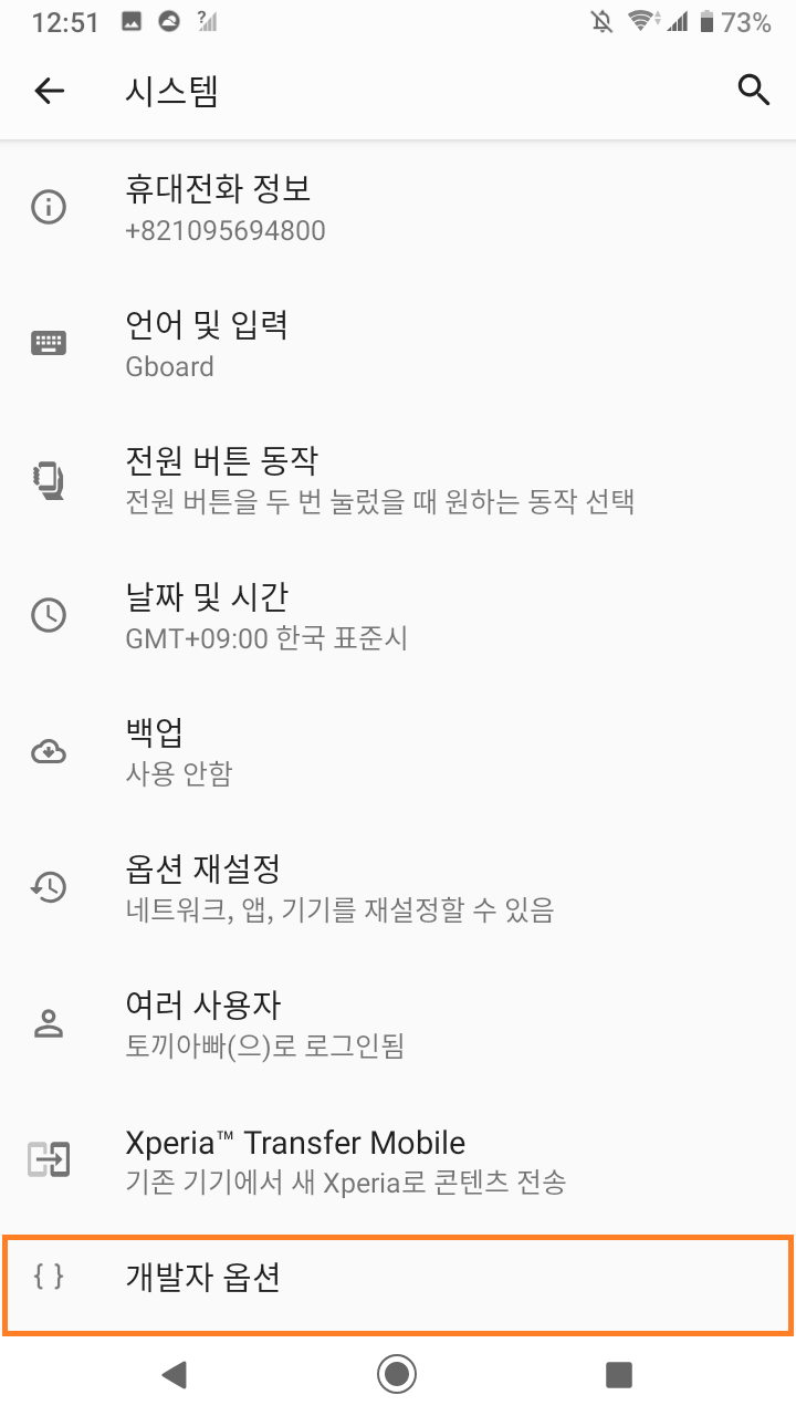 다시 시스템 > 개발자 옵션
