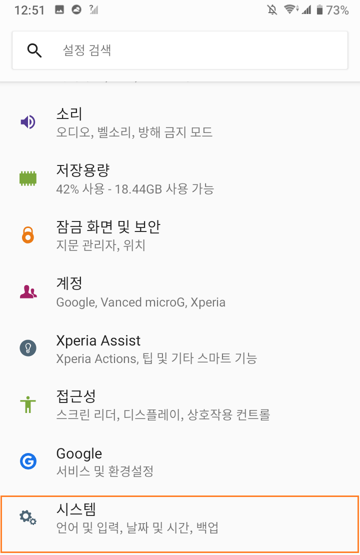설정 > 시스템으로 진입합니다.