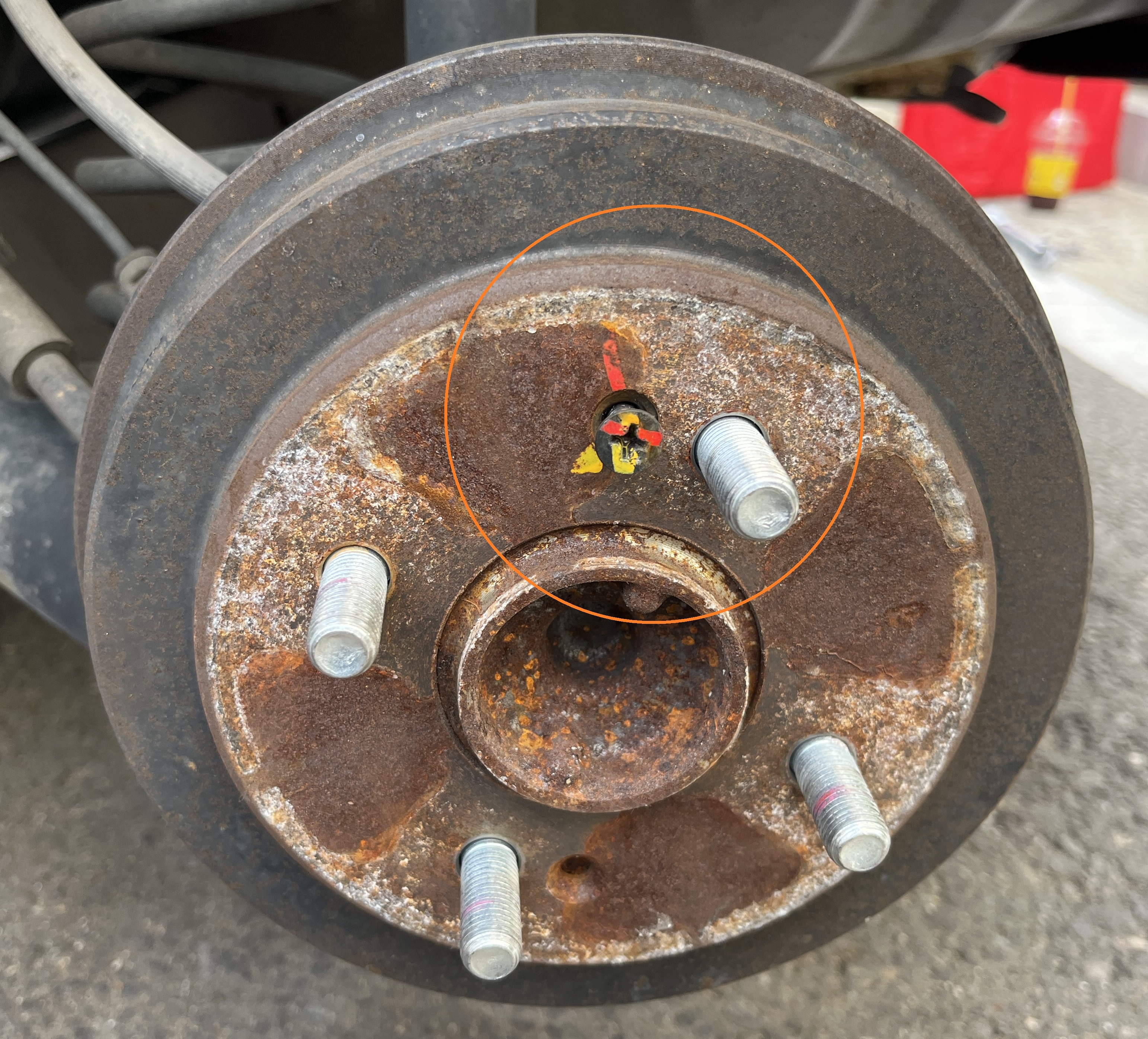 타이어를 탈거하고 나면 브레이크 디스크 스크류를 풀어줘야 하는데, 보통은 여기가 두 번째로 어려운 일입니다.