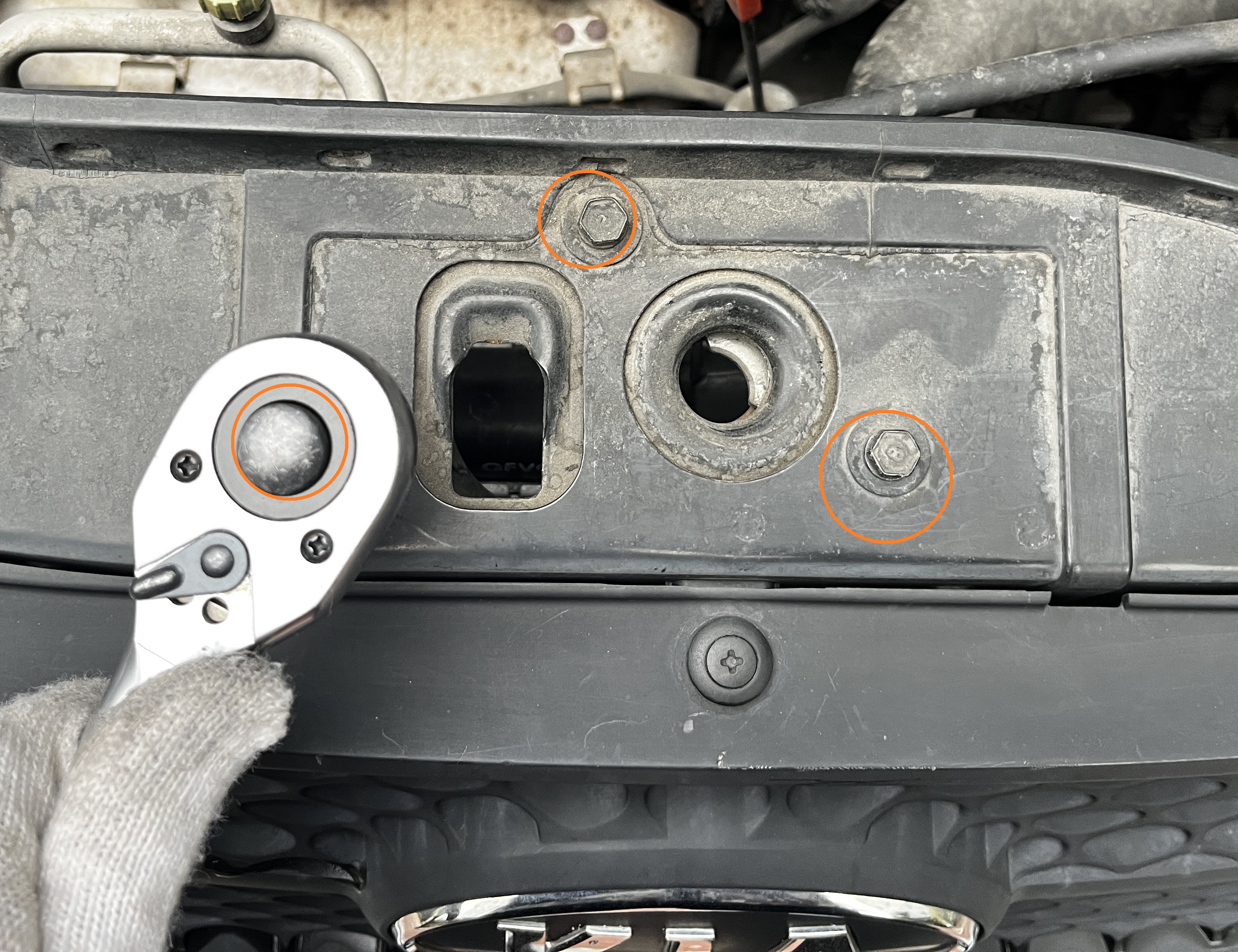 먼저 본넷을 열고 10mm 볼트를 3개 풀어주면 후드 래치가 분리됩니다.