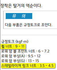 조립 시 토크값은 위 사진을 확인하시기 바랍니다.