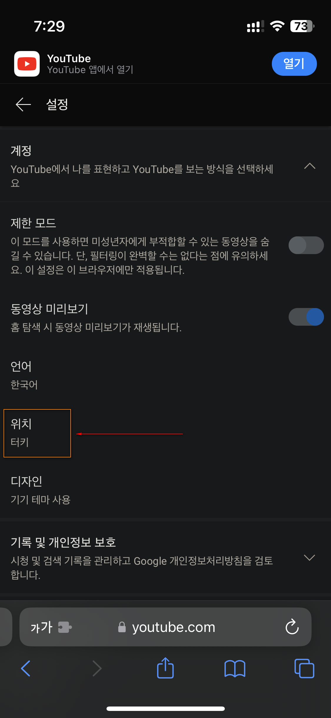 사파리에서 유튜브 웹페이지에 접속합니다.