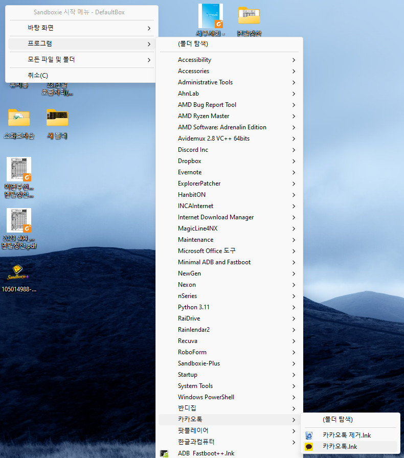 Windows 11에서 카카오톡을 중복으로 실행할 수 있는 Sandboxie-Plus
