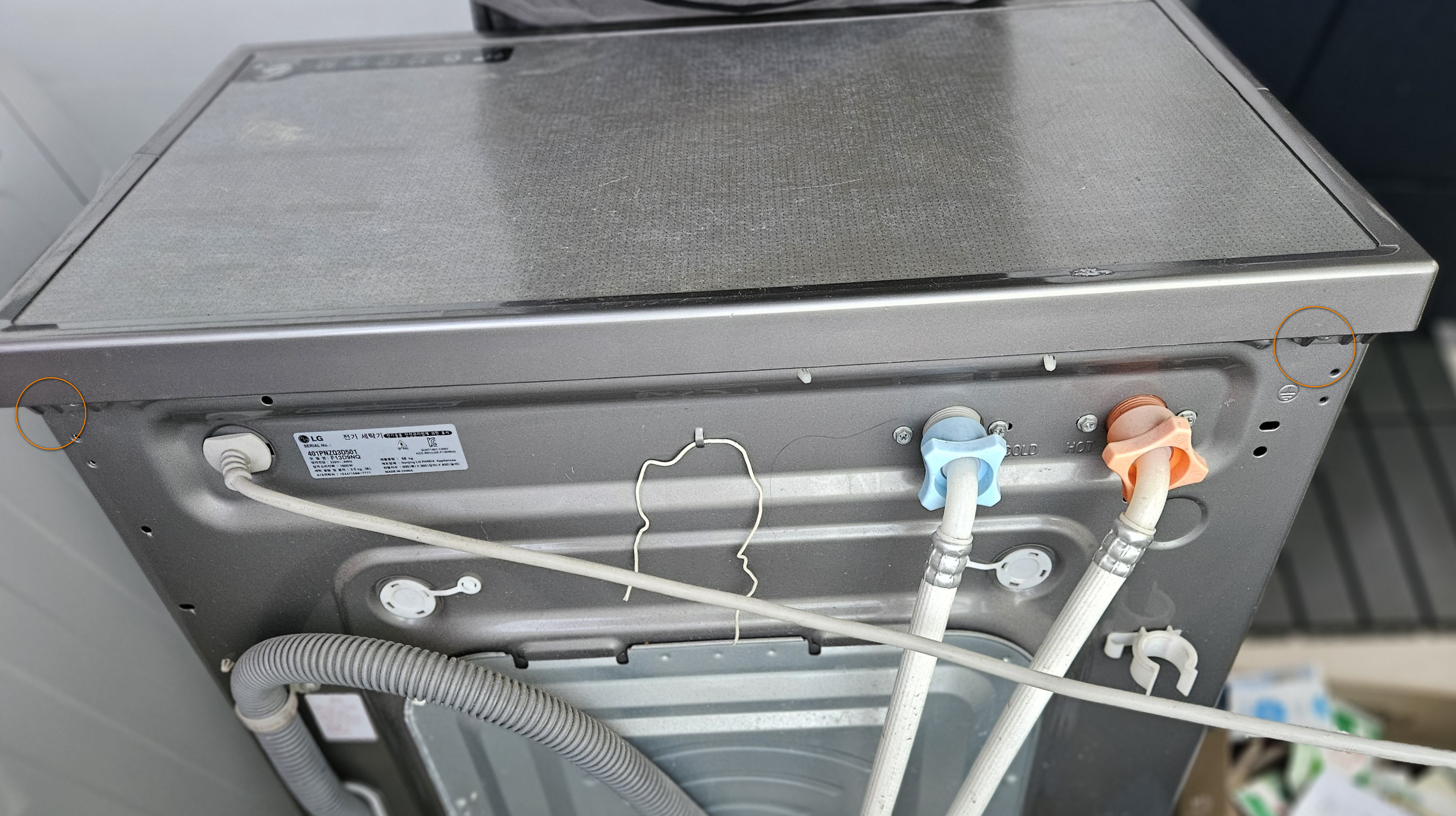 이 제품의 경우 상판 뒷부분의 십자 나사 두 개를 풀어주면 상판을 분리할 수 있습니다.