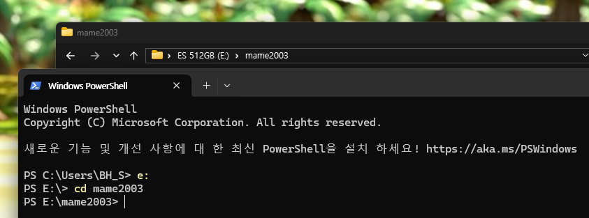파워셀이 열리면 롬파일이 들어 있는 경로로 이동하여 줍니다.