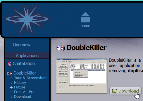 DoubleKiller in a nutshell Benefits - Free up hard disk space by removing unnecessary duplicate files - Reduce the time needed for backups or file searches - Tidy up your picture or music collection Features - Scans directories, complete drives or computer