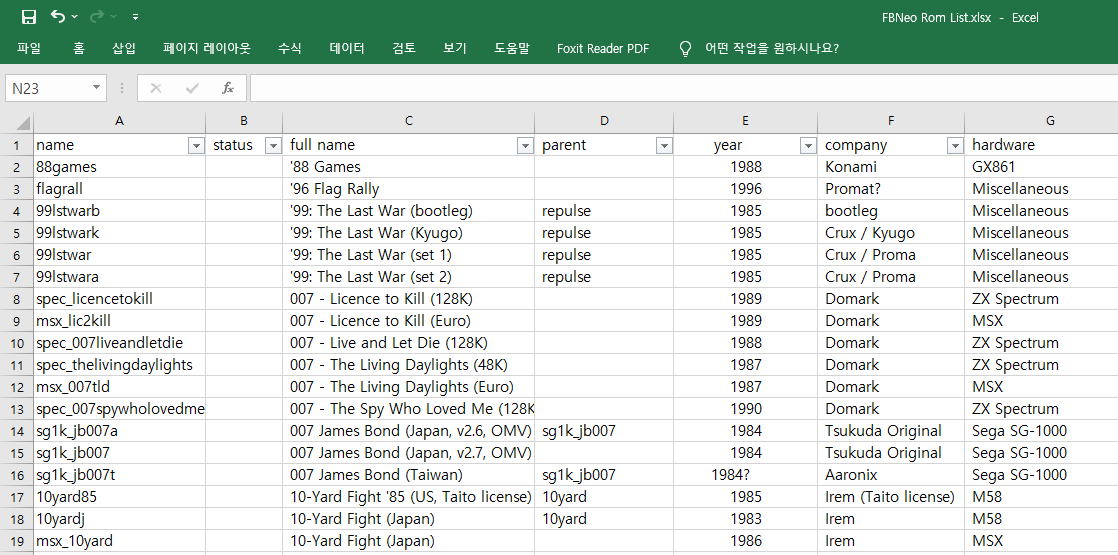 이전 글에서 FBNeo의 자식롬들을 삭제하고 mame2003과 중복되는 롬을 삭제하였습니다.